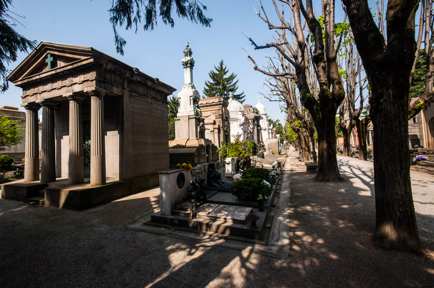 Más que un cementerio tradicional se asemeja más a un museo al aire libre. Este camposanto rebosa bellas tumbas, depositadas desde el siglo XIX hasta la actualidad, con un alto valor artístico. Sus orígenes se remontan al siglo XIX, cuando salió a concurso la construcción de un cementerio en el centro de la ciudad para unificar los pequeños e insalubres que estaban repartidos por Milán.