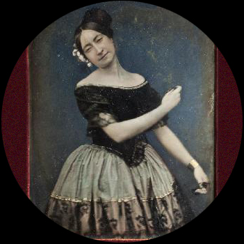 Archivo Adquisiciones y Subastas. [Bailarina de la escuela bolera, con castañuelas. Posible retrato de Marie Guy-Stéphan, que actuaba en el Teatro del Circo, de Madrid. Daguerrotipo] Hacia 1850.