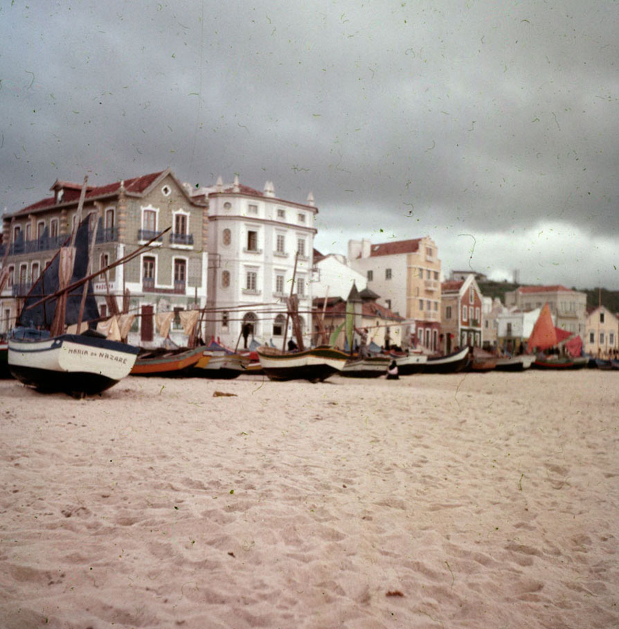Donación Leonardo Villena. Puerto pesquero con barcos con velas de colores típicos de la zona. Hacia 1950.