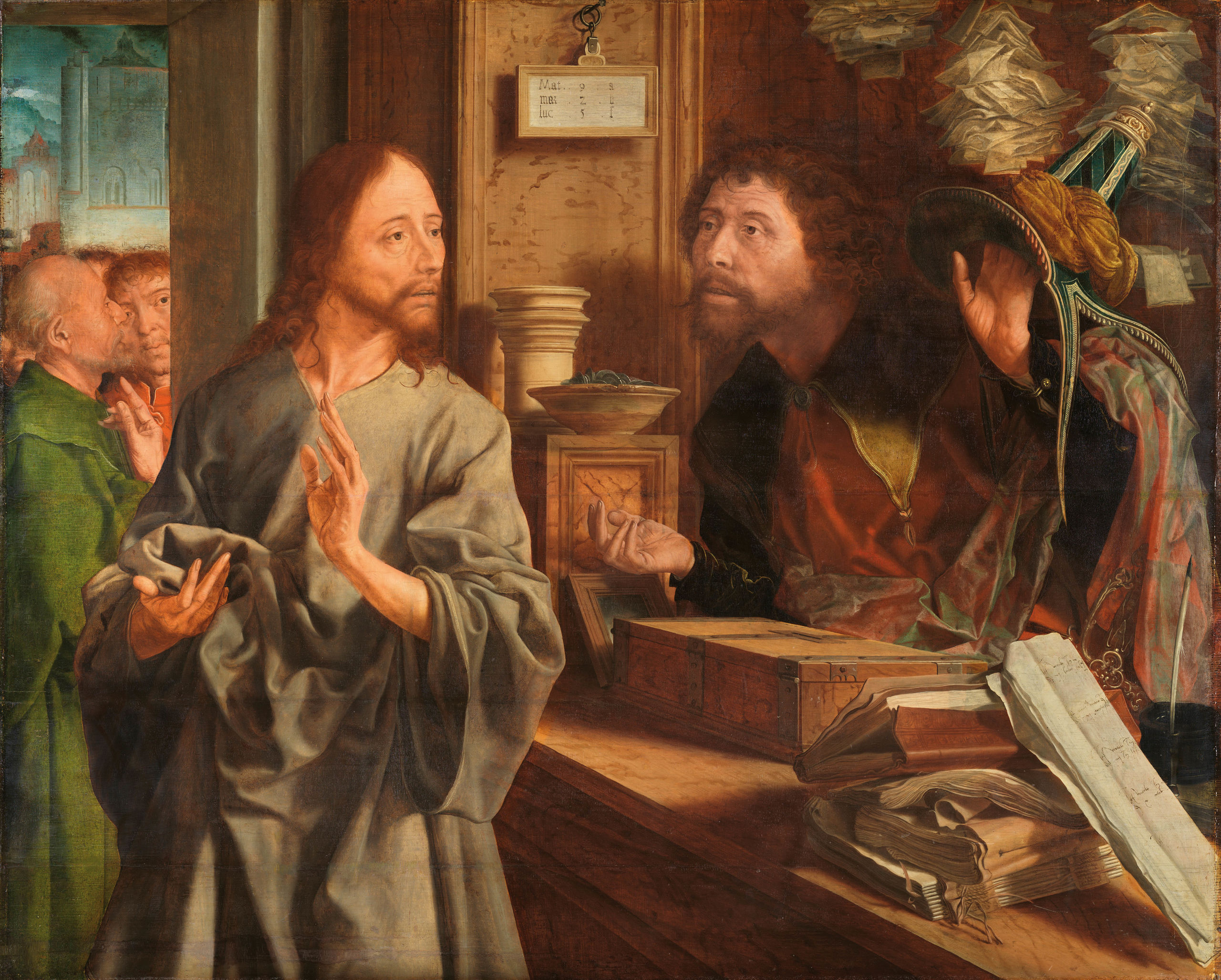La vocación de san Mateo, de Marinus van Reymerswale. Óleo sobre tabla de roble h. 1530 Madrid.