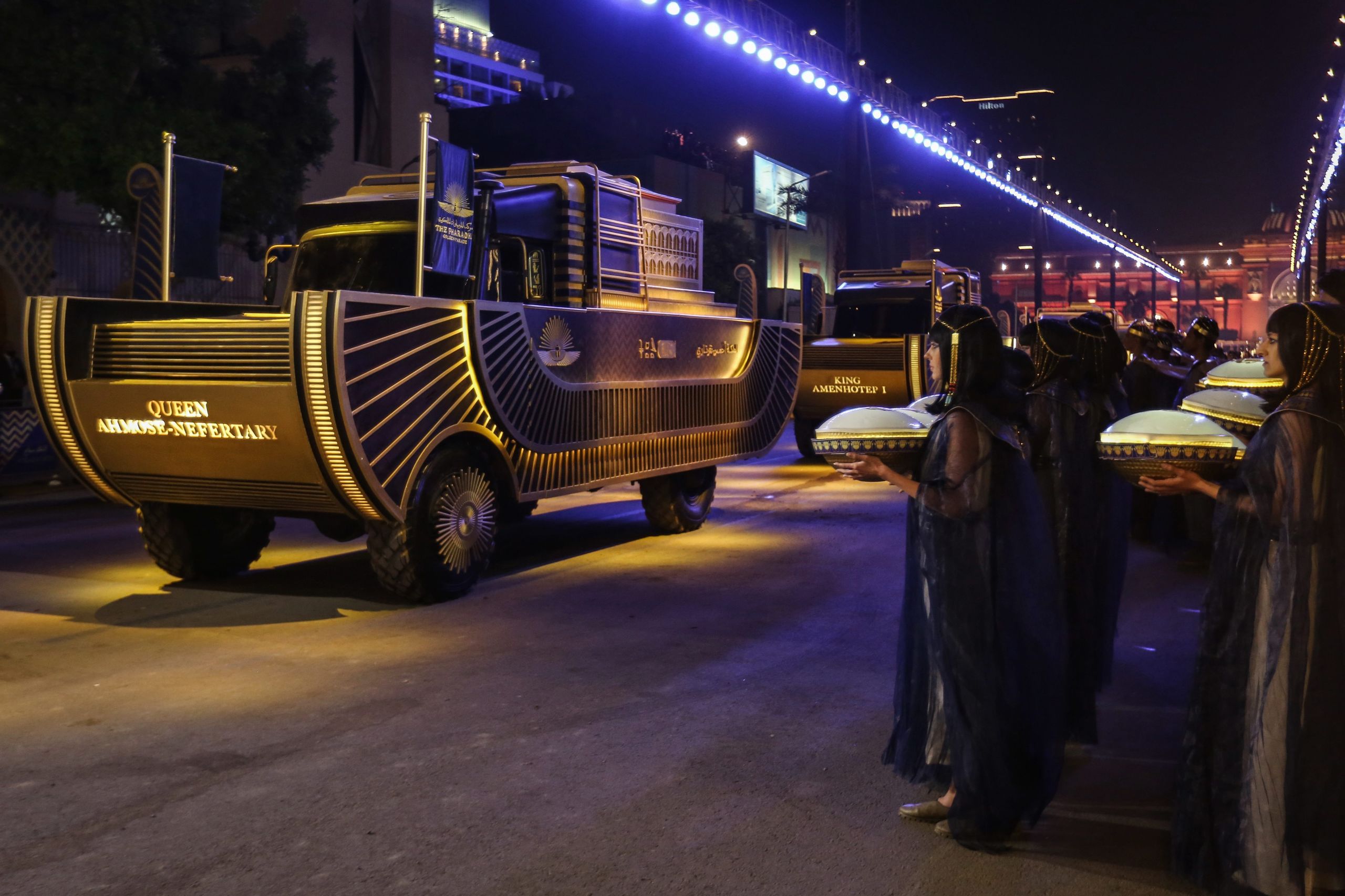 Un convoy transportó a dieciocho reyes del Antiguo Egipto y cuatro reinas desde el Museo Egipcio de Tahrir hasta su nuevo lugar de descanso en el Museo Nacional de la Civilización egipcia.