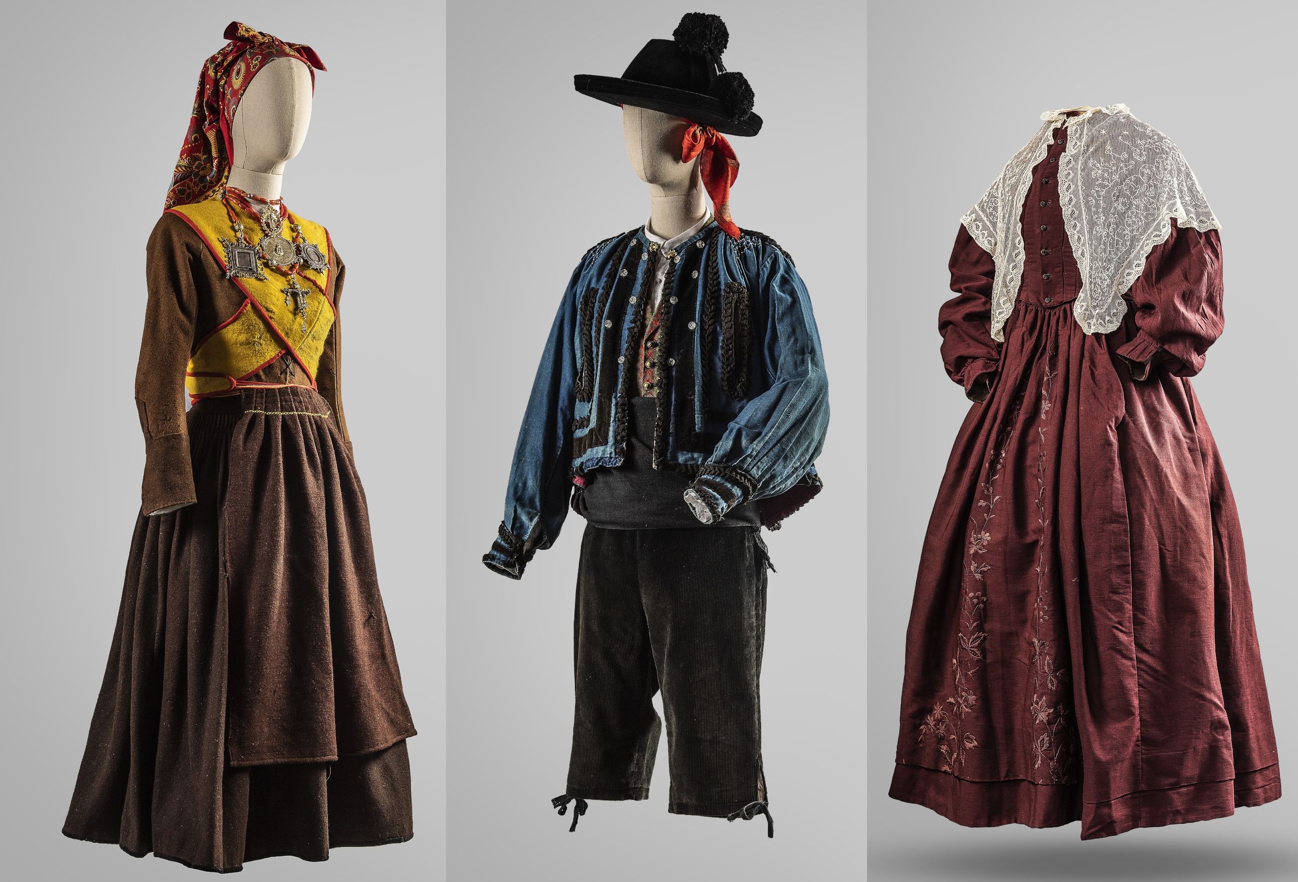 Los trajes “al estilo del país” que se pueden contemplar son conjuntos completos tanto masculinos como femeninos que son herencia de épocas pasadas que hundían sus raíces en tiempos remotos como el medievo (jubones, cruzados, capas, sayas…) y que eran realizadas con materias primas locales.