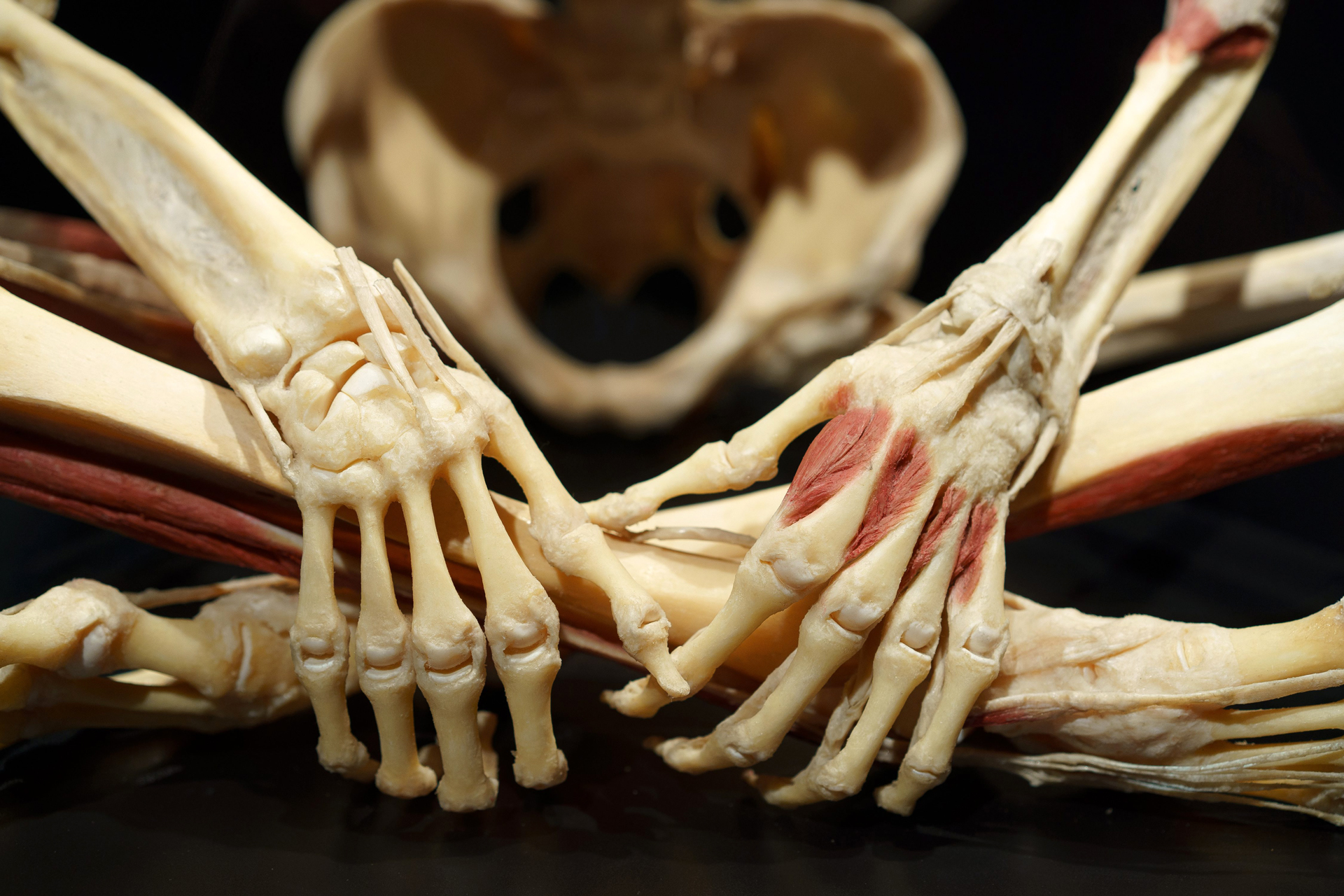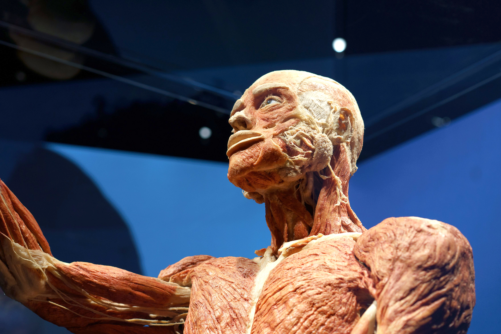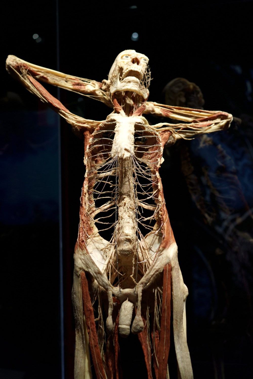 Más de 200 especímenes plastinados —entre ellos cuerpos enteros, configuraciones de cuerpos, partes translúcidas y órganos, así como instalaciones tridimensionales y zonas interactivas—organizados y presentados en ámbitos temáticos que representan los diversos sistemas del cuerpo humano.