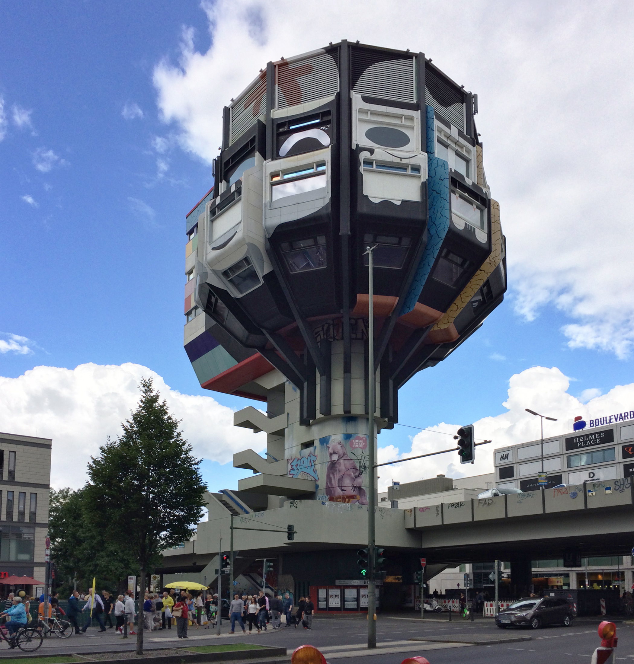 Este otro adefesio está en Berlín, tiene 46 metros de alto y los que saben y etiquetan dicen que es de estilo brutalista sci-fi. Perpetrado entre los años 1972 y 1976 por los arquitectos Ursula y Ralph Schuler, los berlineses lo llaman Bierpinsel por la pinta de brocha (pinsel) de afeitar que tiene y porque la idea era que acogiera bares y restaurantes donde poder hartarse de cerveza (bier). Lleva bastante tiempo en desuso, pero en 2021 lo adquirió el grupo Immoma y quizá el año que viene reabra como centro de coworking.