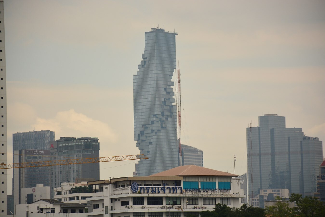 No hagan caso de las grúas ni de la poco promisoria panorámica: ese rascacielos está terminado desde hace seis años y luce así en la noche de Bangkok. El deslumbrante King Power Mahanakhon es, con sus 314 metros, el edificio más alto de Tailandia, y en sus 78 plantas y 152.000 m2 cuadrados alberga tiendas, oficinas, restaurantes, un hotel y apartamentos de hasta 17 millones de dólares. ¿Quiere darse un garbeo virtual? Pinche aquí y alucine un rato.