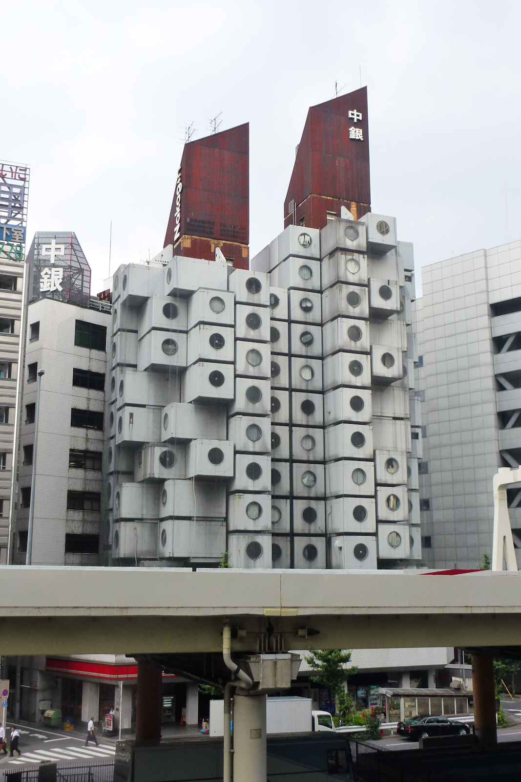La Nakagin Capsule Tower (son dos en realidad) de Tokio fue concebida como referente de la arquitectura metabólica, adaptada a las cambiantes circunstancias del entorno; pero siempre fue lo que parece, un espanto claustrofóbico. Pese a lo que pretendía su creador, el arquitecto Kurokawa Kisho, ni una sola de sus 140 cápsulas (de 10 m2) ha sido jamás modificada, trasladada, adaptada en sus 50 años de existencia. Como suele ocurrir con los artefactos futuristas, el futuro le ha sentado de pena y está hecho una ruina, de hecho no se descarta que acabe siendo víctima de la piqueta o –advierten los técnicos– de un terremoto. Sigue viviendo gente en sus nichos, 20 personas según el recuento que hizo el periodista británico Justin McCurry en noviembre del año pasado.