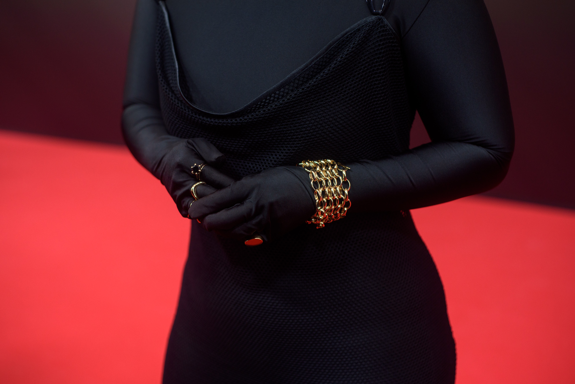 Lucir las joyas también es importante. En este caso, dorado sobre negro en el traje de Ángela Cervantes.