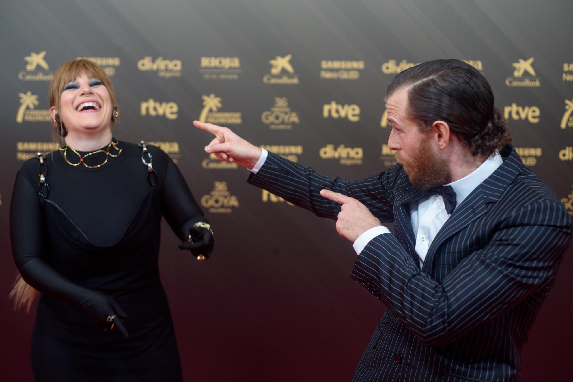 Ángela Cervantes y su hermano Álvaro Cervantes, bromeando en la alfombra roja.