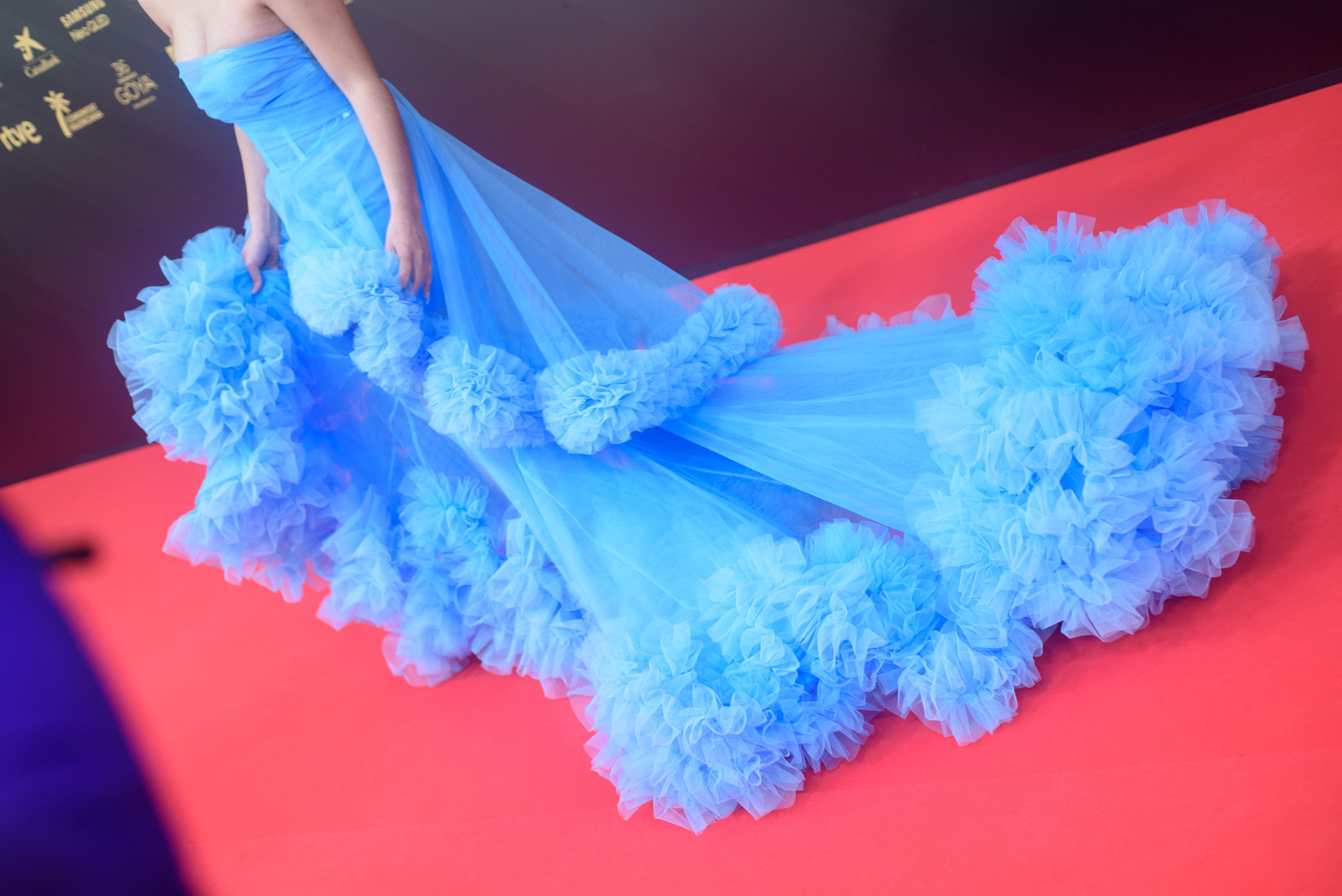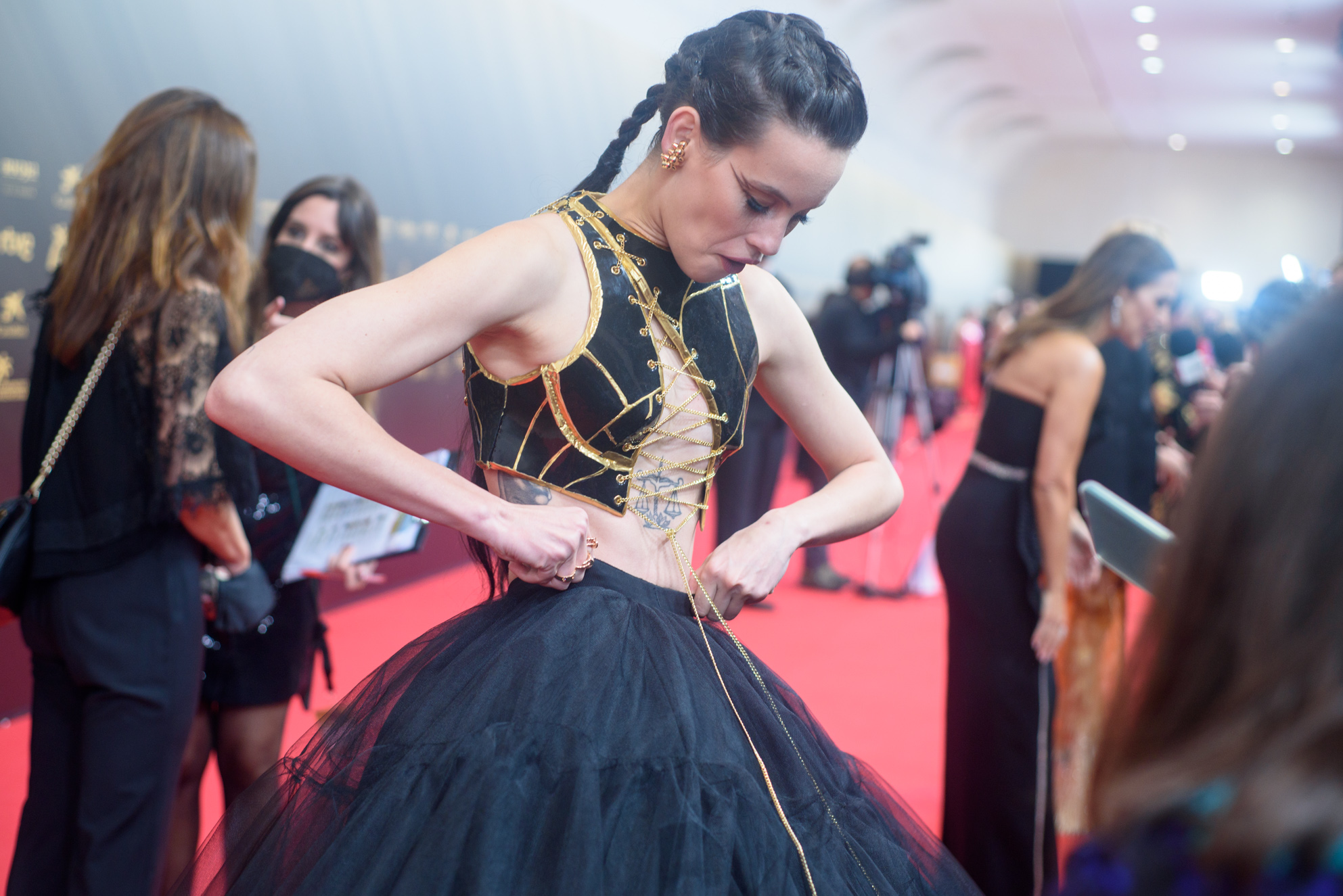 Laura Pedro, desfila en la alfombra roja. Ganadora al Goya por los Mejores Efectos Especiales.