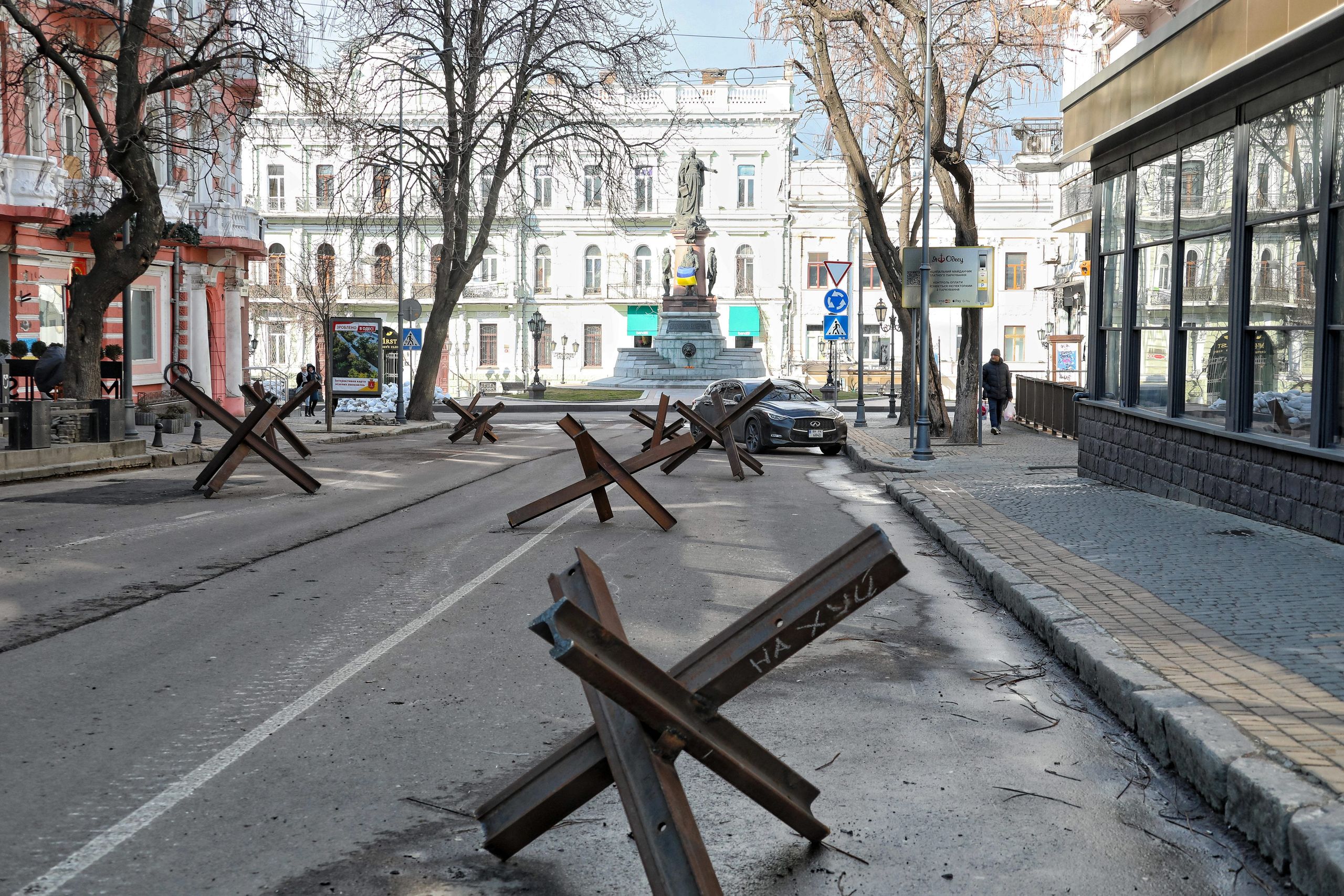 Los defensores de Odesa, al sur de Ucrania, han colocado en las calles de la ciudad numerosos erizos checos, un obstáculo antitanque con el que pretenden dificultar una posible invasión rusa.