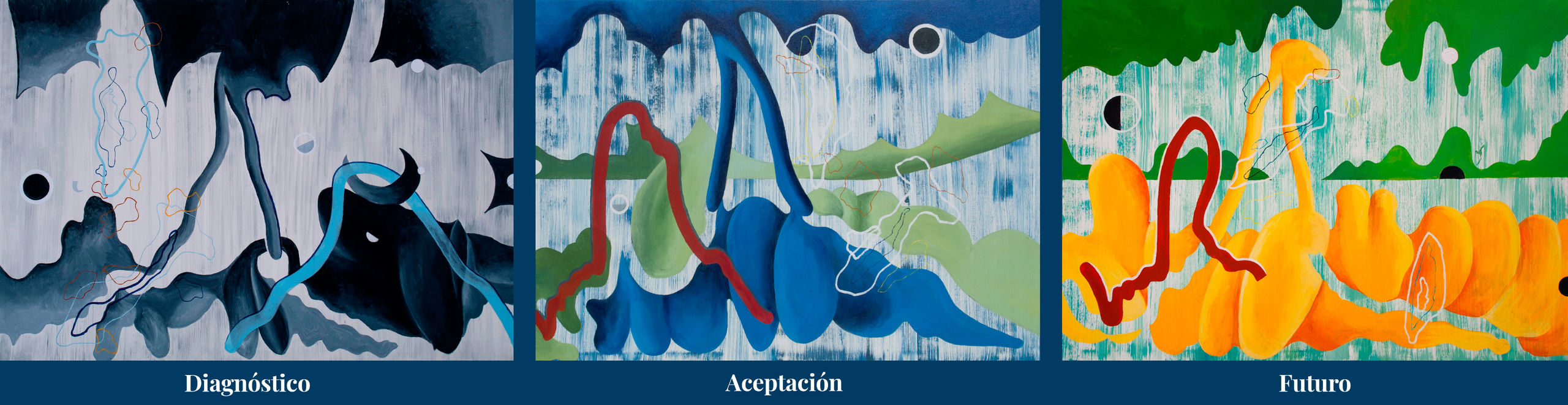 En las obras destaca el notable cambio visual que se observa cuando las pacientes hablan de investigación e innovación, sinónimo para ellas de esperanza