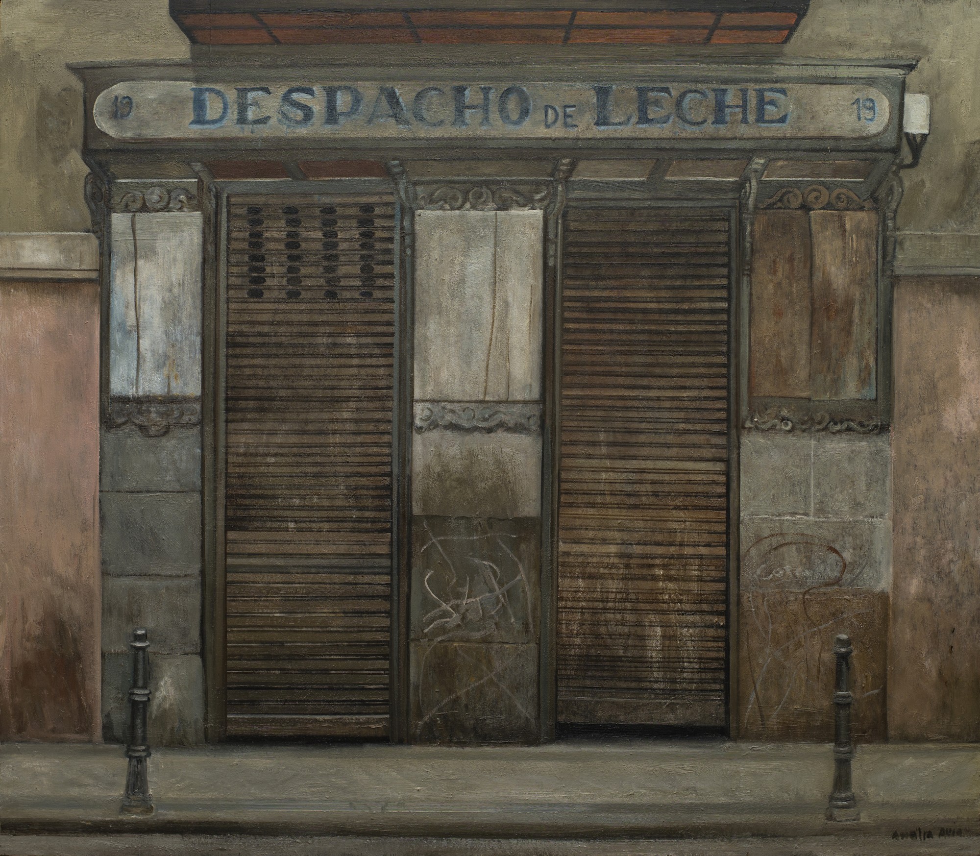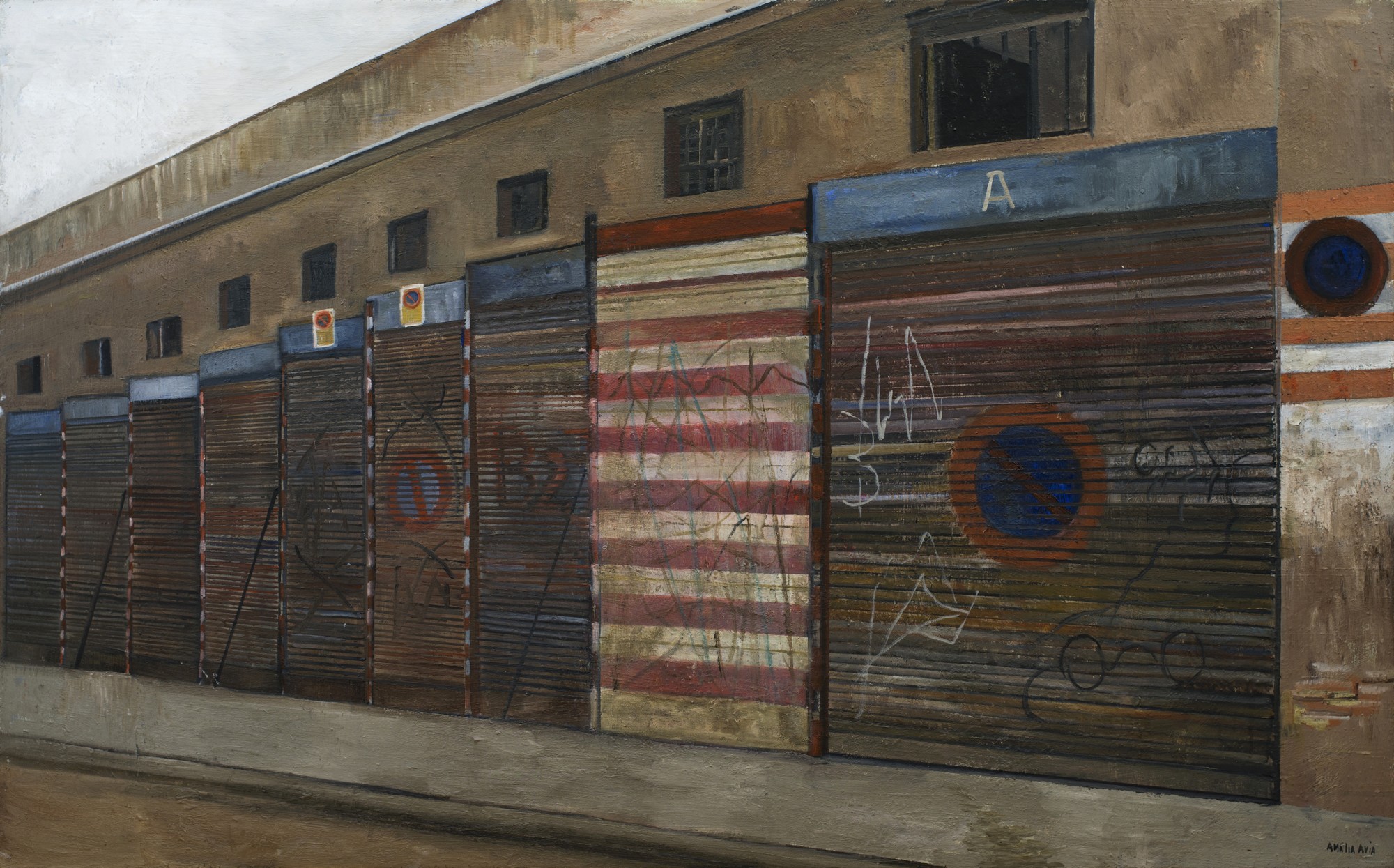 La artista retrata imágenes de puertas, fachadas y ventanas que, a través de pormenorizados detalles –grafitis, desconchones, etcétera-, nos recuerdan cómo fue aquel Madrid que la artista observaba, fotografiaba y pintaba.