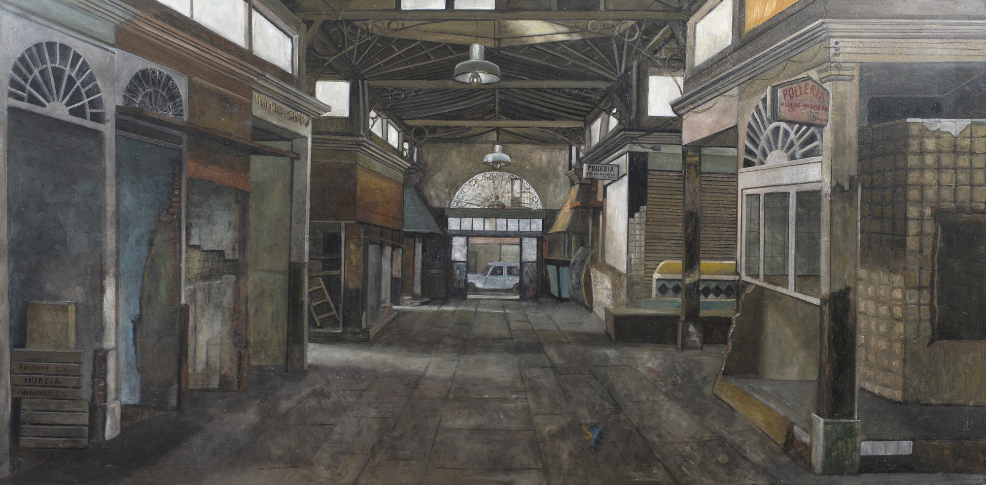 Su pintura aborda temas urbanos y muestra la belleza de los edificios con sus fachadas dañadas por el paso del tiempo.