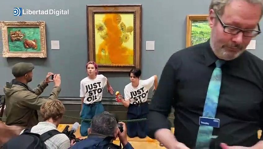 La versión de Los girasoles de Van Gogh que cuelga de las paredes de la National Gallery de Londres ha sido la víctima del ataque de dos energúmenas ecologistas que pretendían protestar contra el uso de petróleo y gas.