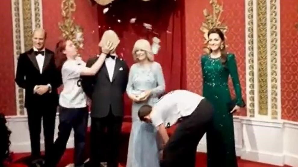 Continúa la oleada de actos vandálicos en museos por parte de activistas ecologistas radicales. Primero fue contra obras de arte de Van Gogh o Monet y ahora ha sido el turno de la estatua de cera de Carlos III del Madame Tussauds de Londres. Dos individuos han estampado tartas en la cara del modelo que representa al monarca.
