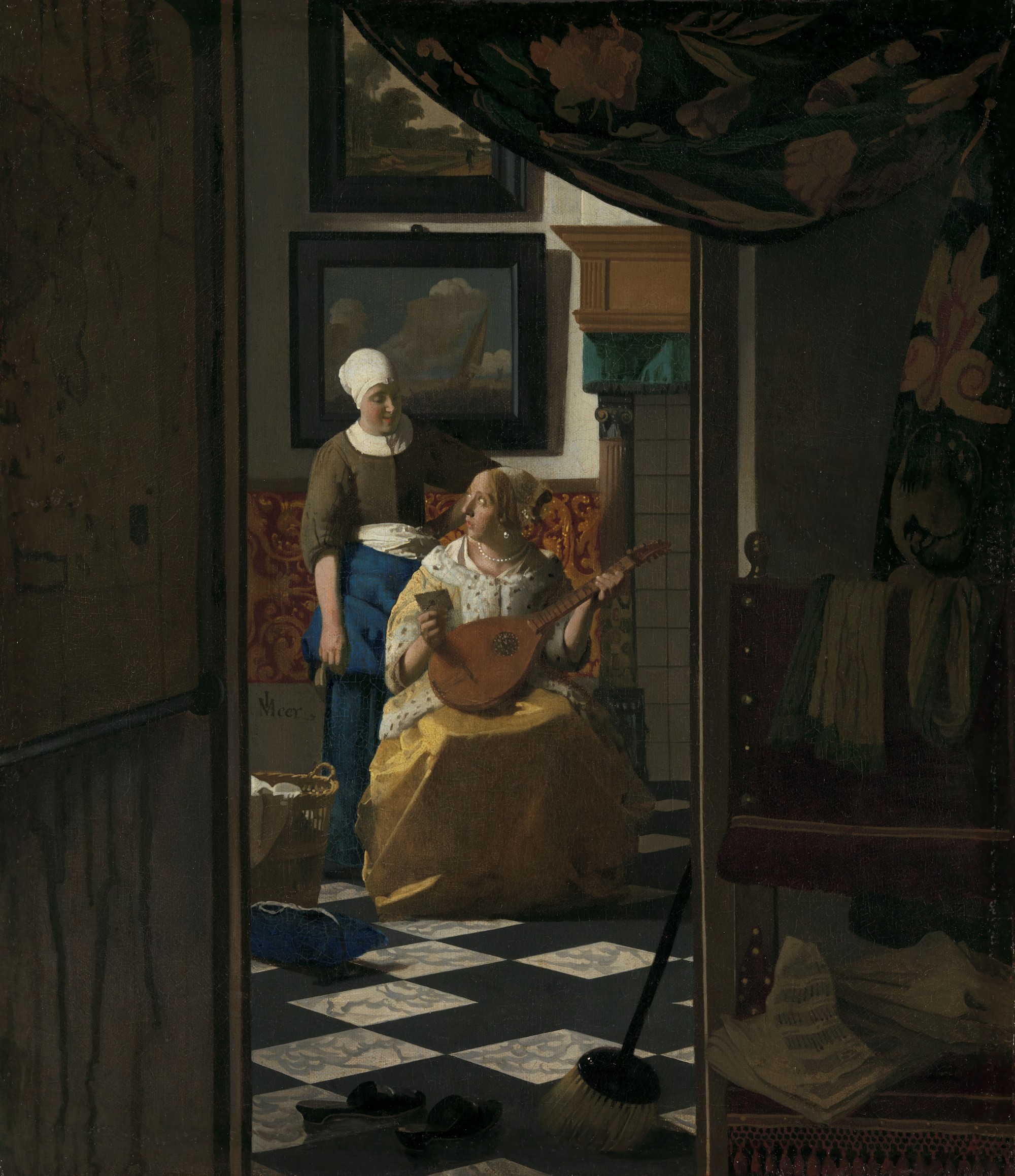 Un equipo de comisarios, conservadores y científicos ha trabajado conjuntamente en el uso de tecnología puntera que están dando como resultado nuevas investigaciones sobre la pintura de Vermeer. Los resultados permiten extraer novedosas conclusiones sobre la vida y la obra del maestro. Imagen: La carta de amor, 1669-70, Rijksmuseum, Ámsterdam