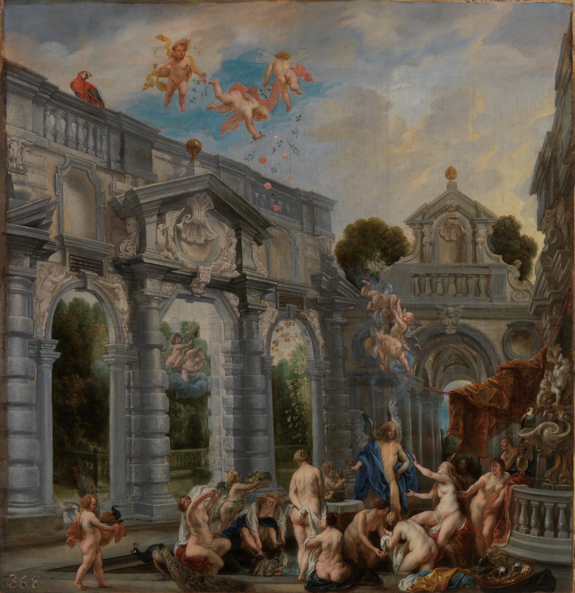 En esta composición del siglo XVII del flamenco Jacob Jordaens, el centro de la composición está poblado de figuras femeninas y un joven halado identificado como Cupido.