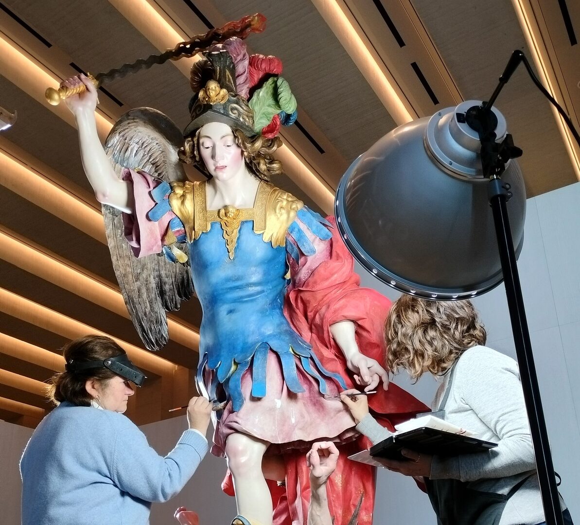 Tras su restauración en los talleres del Palacio Real, este Arcángel de 2,64 metros de alto y 157,5 kilos formará parte de la exposición inaugural de la Galería de las Colecciones Reales prevista para el próximo verano, una apertura que coincidirá con el inicio de la presidencia española de la UE.