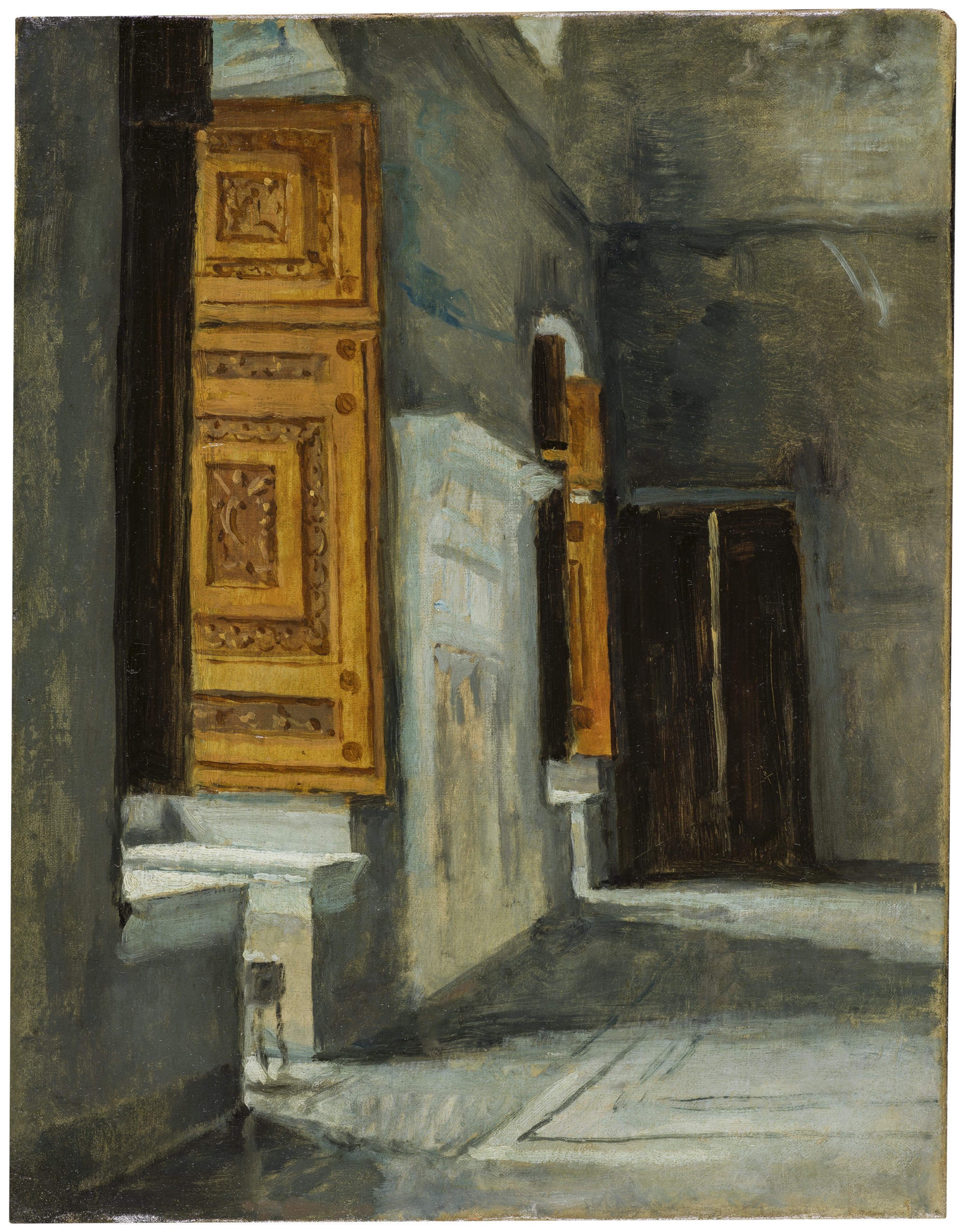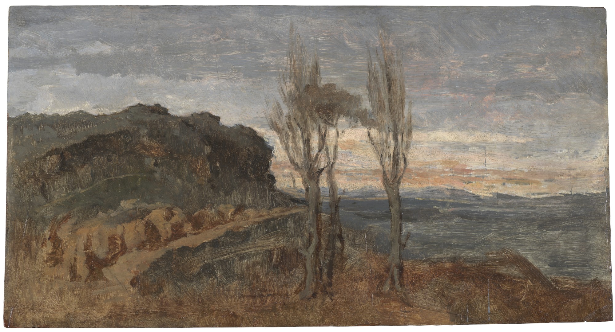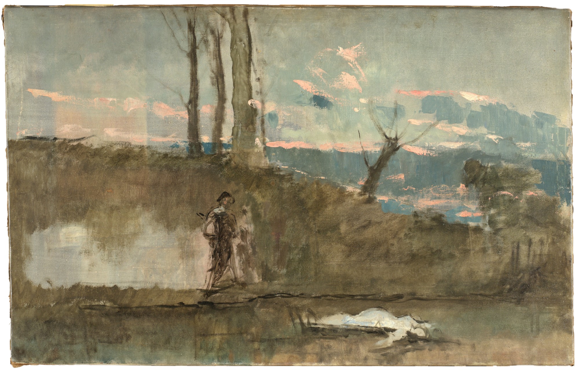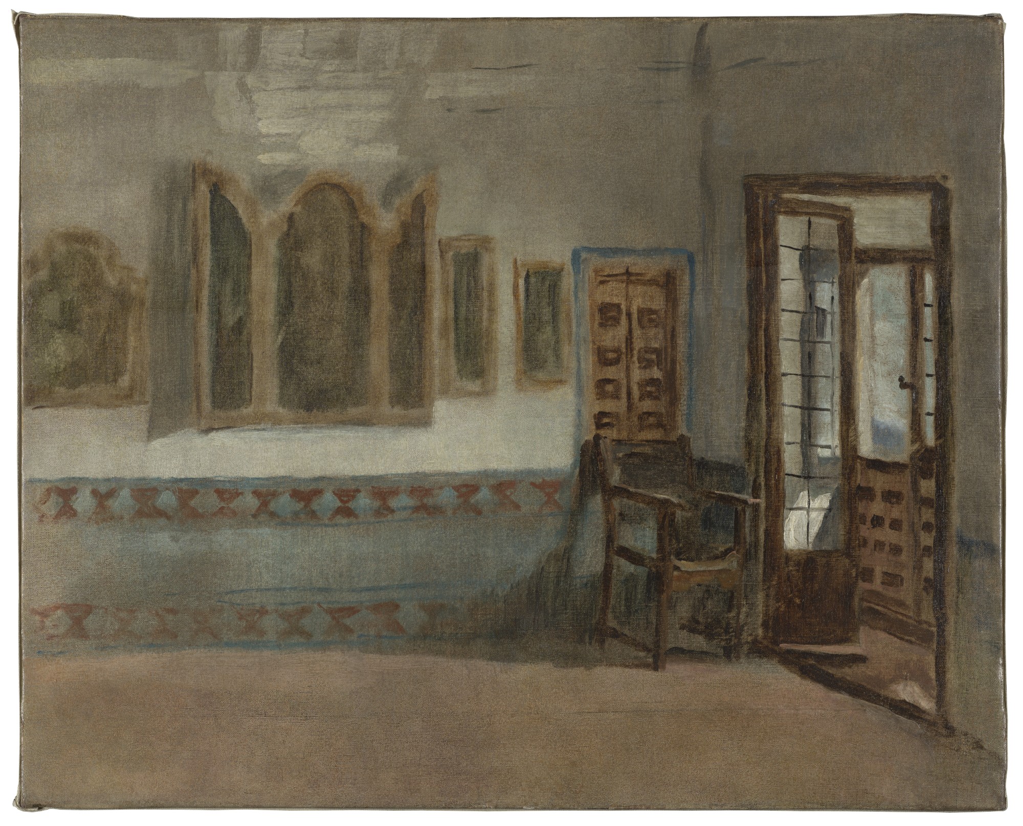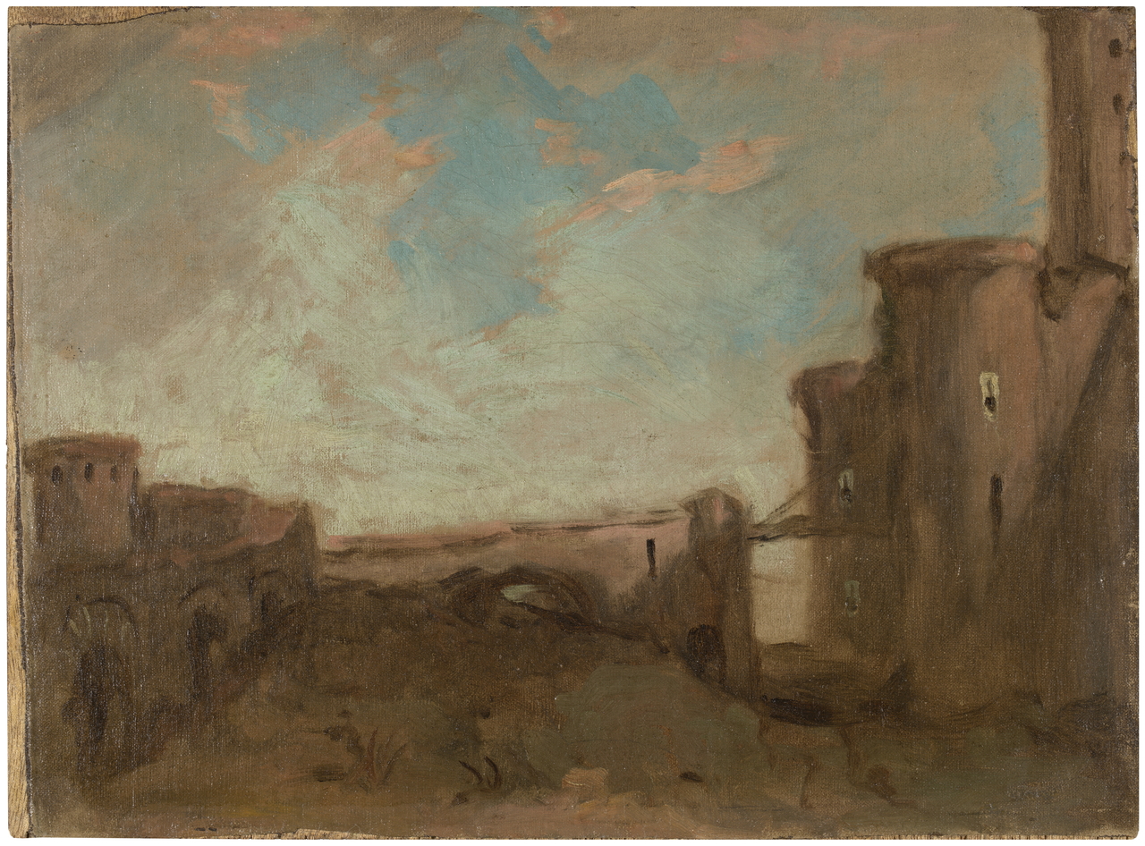 Las obras dedicadas al paisaje y los estudios relacionados con las pinturas de historia (El castillo de la Mota, La Sala de Constantino en el Vaticano) y la literatura (Ofelia) dan cuenta de un creciente sentido de la simplificación. | Imagen: Sala de Constantino en el Vaticano (estudio), de Eduardo Rosales (1869)