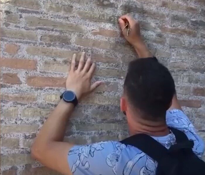 Los dos estaban visitando la capital italiana durante un viaje de tres semanas por Europa y durante una visita al Coliseo, el hombre escribió la frase "Ivan+Hayley 23" en una pared, como se puede ver en un vídeo colgado por otro turista en una plataforma y que se hizo viral.