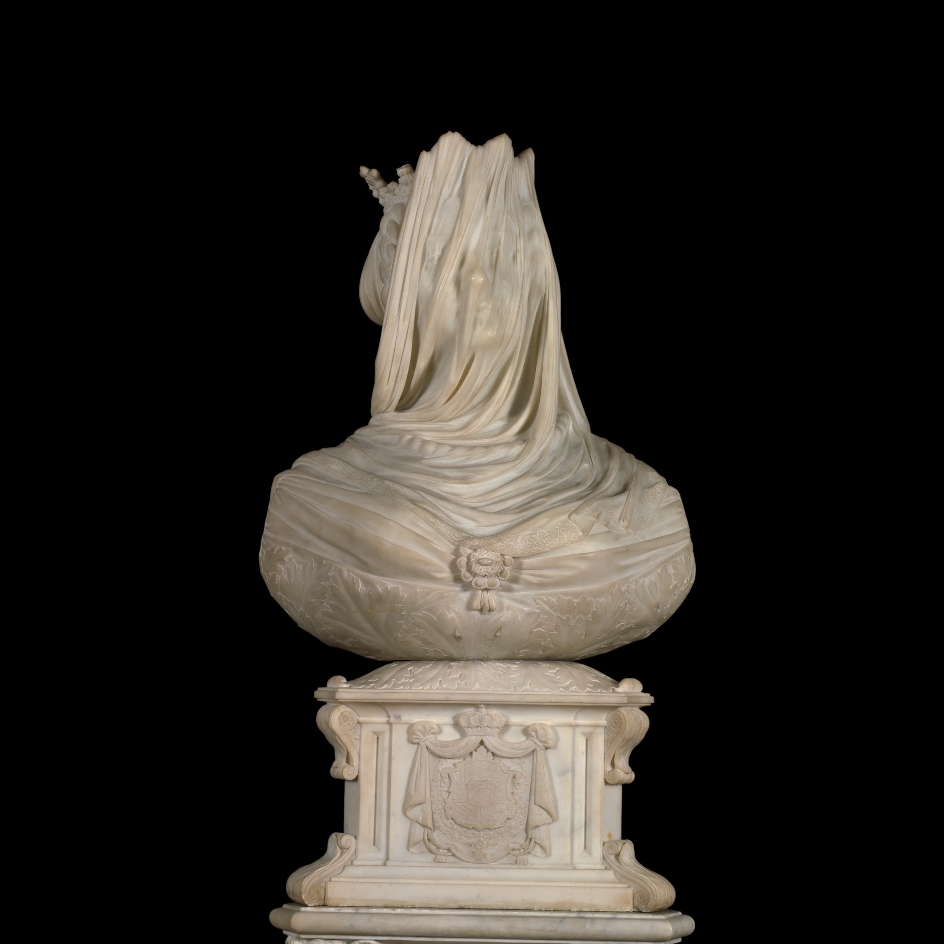 En España contamos con un fabuloso ejemplo en el Museo del Prado. Se trata de Isabel II, velada (1855), de Camillo Torreggiani. El escultor italiano quiso impresionar a la reina y obtener su reconocimiento con su maestría técnica.