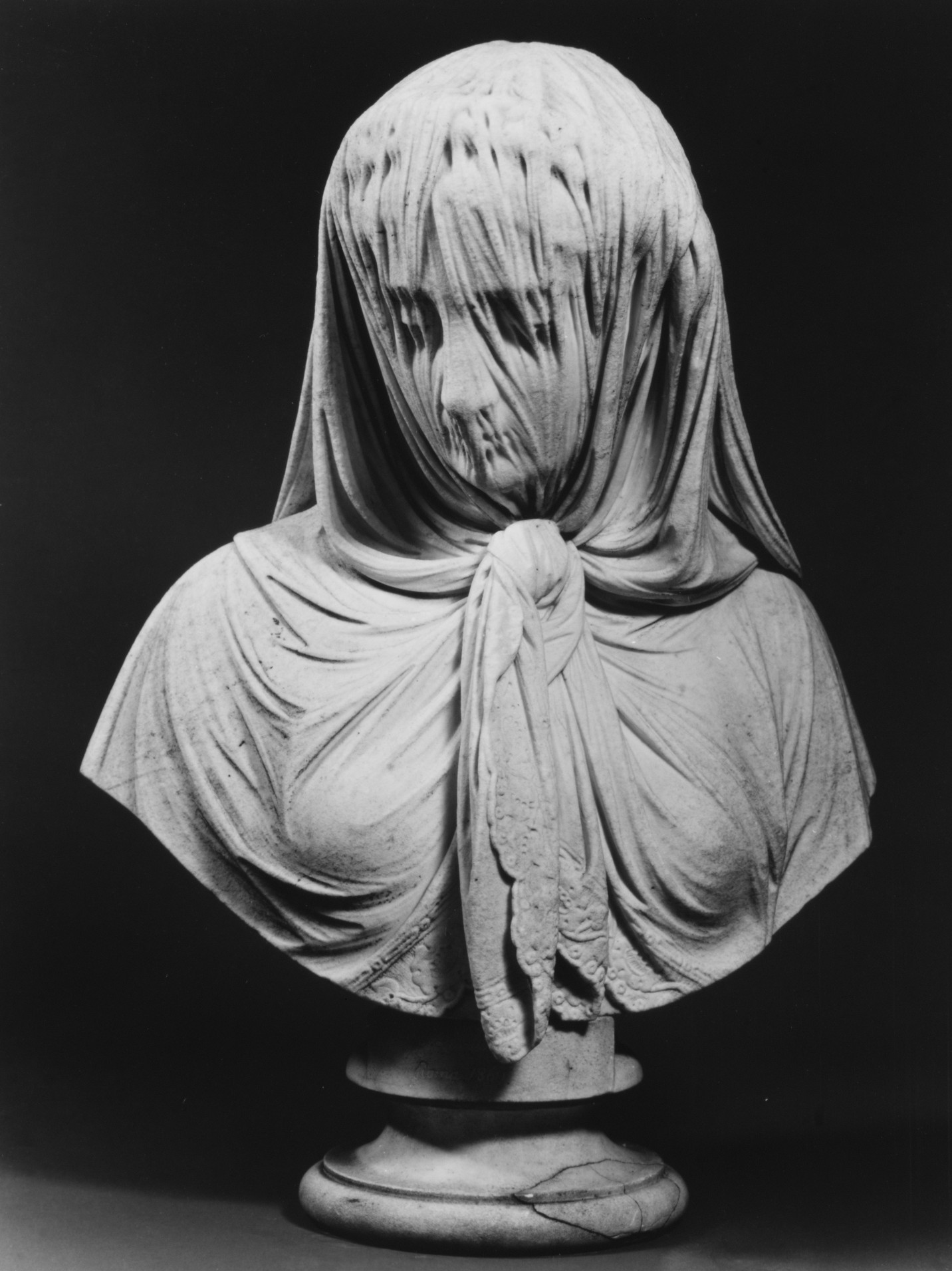 La Vestale velata (1847) de Raffaele Monti, representa una diosa romana del hogar, con el rostro velado, arrodillada y portando una llama. Se exhibió durante la Gran Exposición de 1851 en el The Crystal Palace con tremendo éxito.