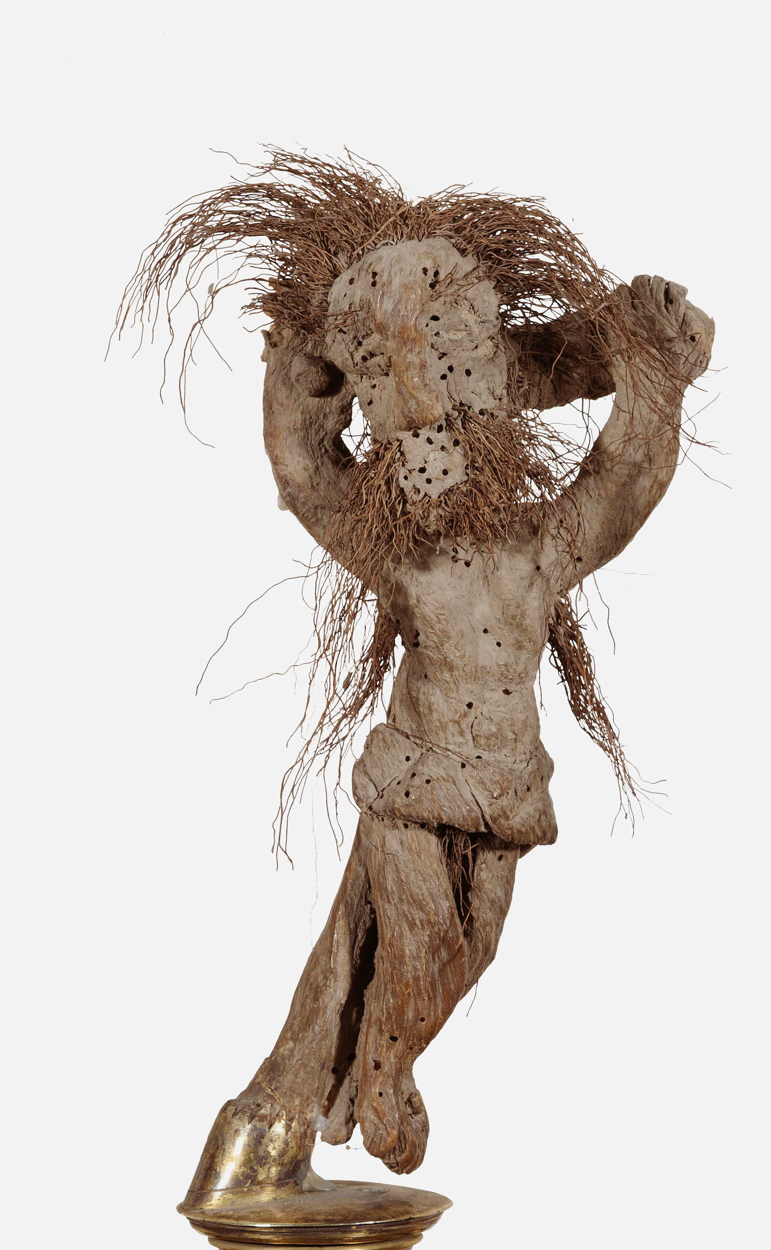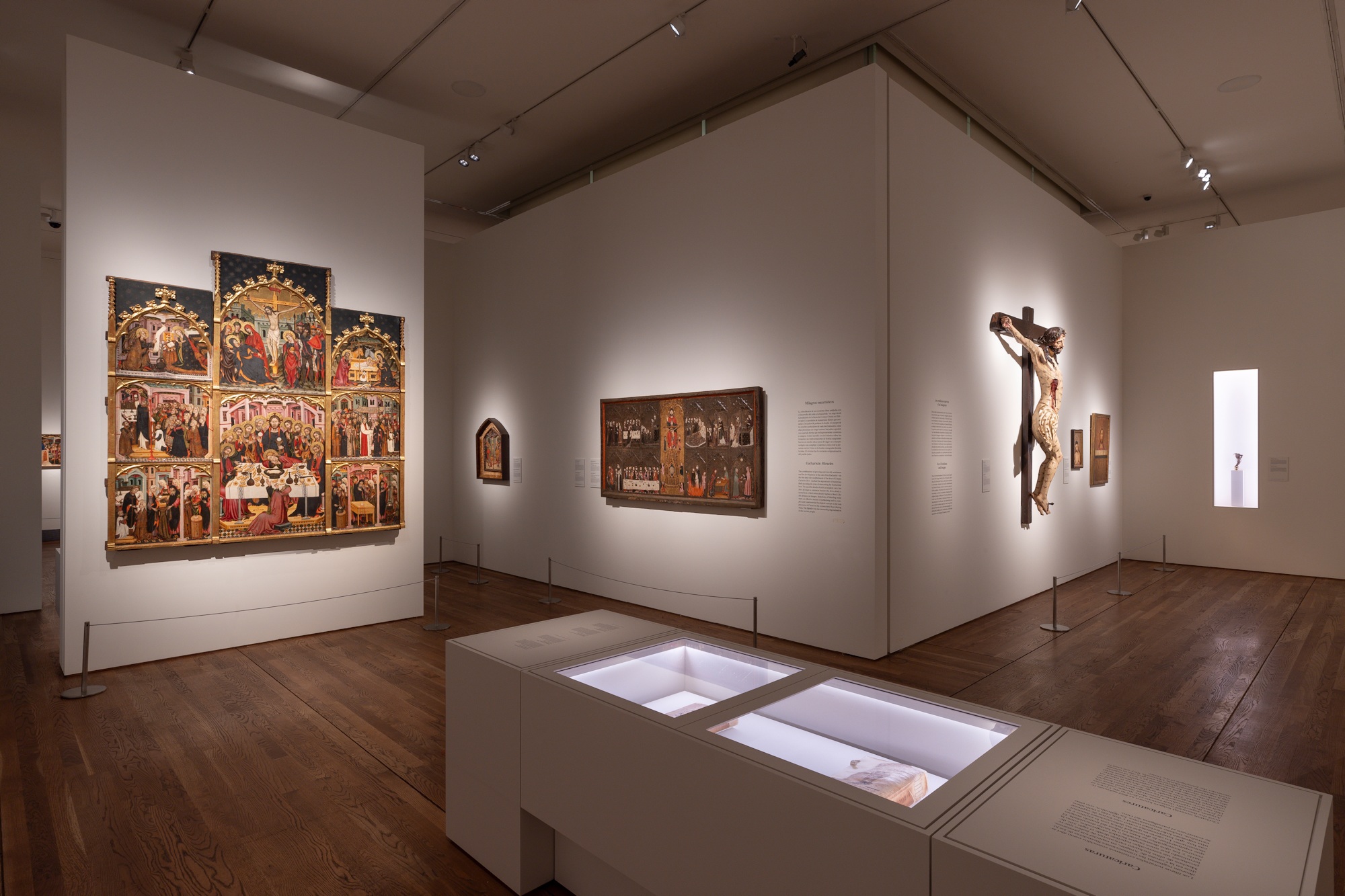 Una de las particularidades de esta exposición es la presentación de un conjunto de obras y programas absolutamente únicos en toda Europa, puesto que responden a las especiales circunstancias que determinaron las relaciones interreligiosas en los reinos peninsulares entre los siglos XIII y XV. / Imagen: Cristo de la Cepa. Madera y raíces de vid, 19 x 8,5 cm. h. 1400.