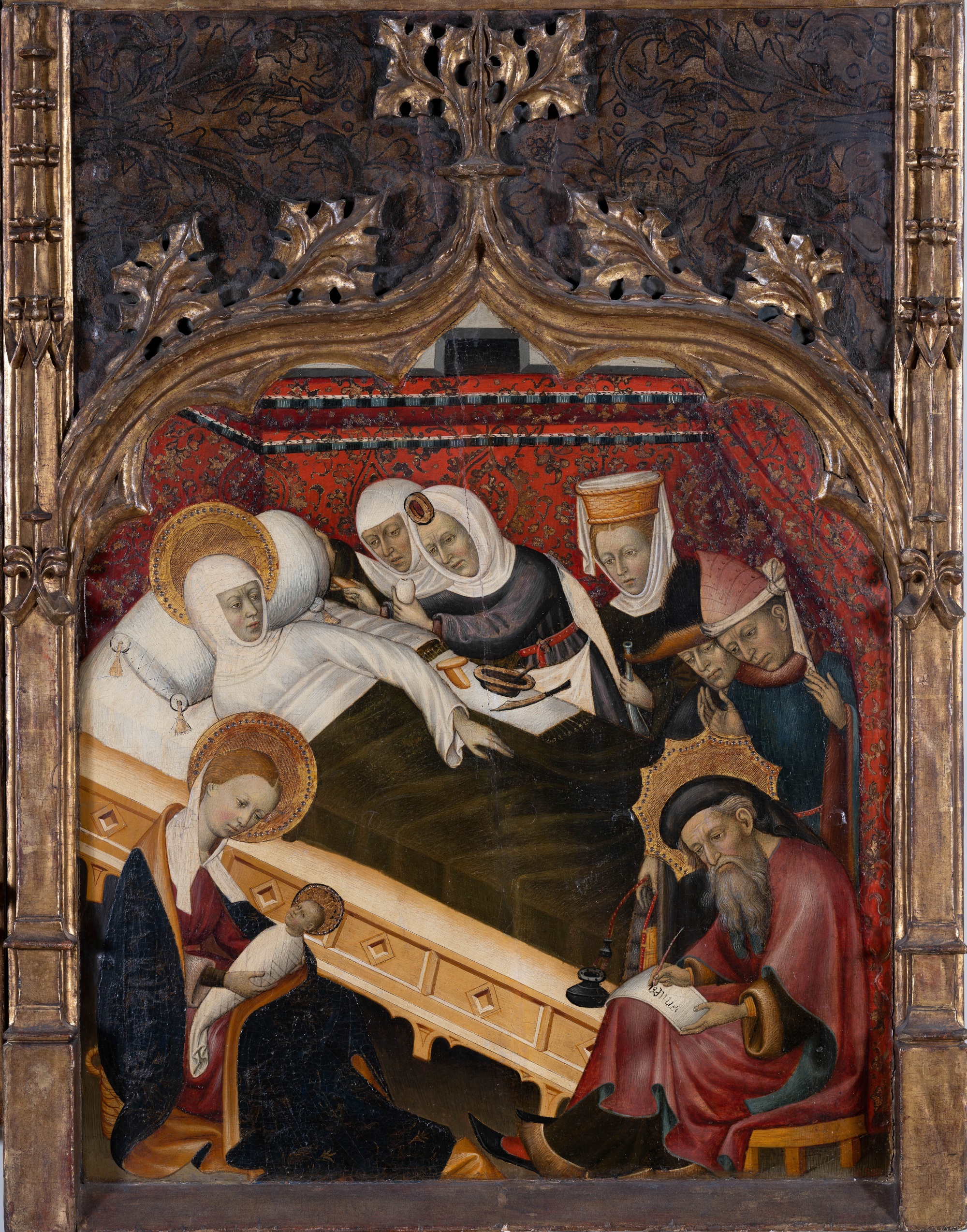 La exposición, en colaboración con el Museo Nacional de Arte de Cataluña, presenta un discurso que ilustra cómo el arte contribuyó decisivamente a difundir el creciente antijudaísmo que anidaba en la sociedad cristiana. / Imagen: Nacimiento de san Juan Bautista (parte del Retablo de los Santos Juanes de Vinaixa, Lérida) Bernat Martorell. Óleo sobre tabla, h. 1450