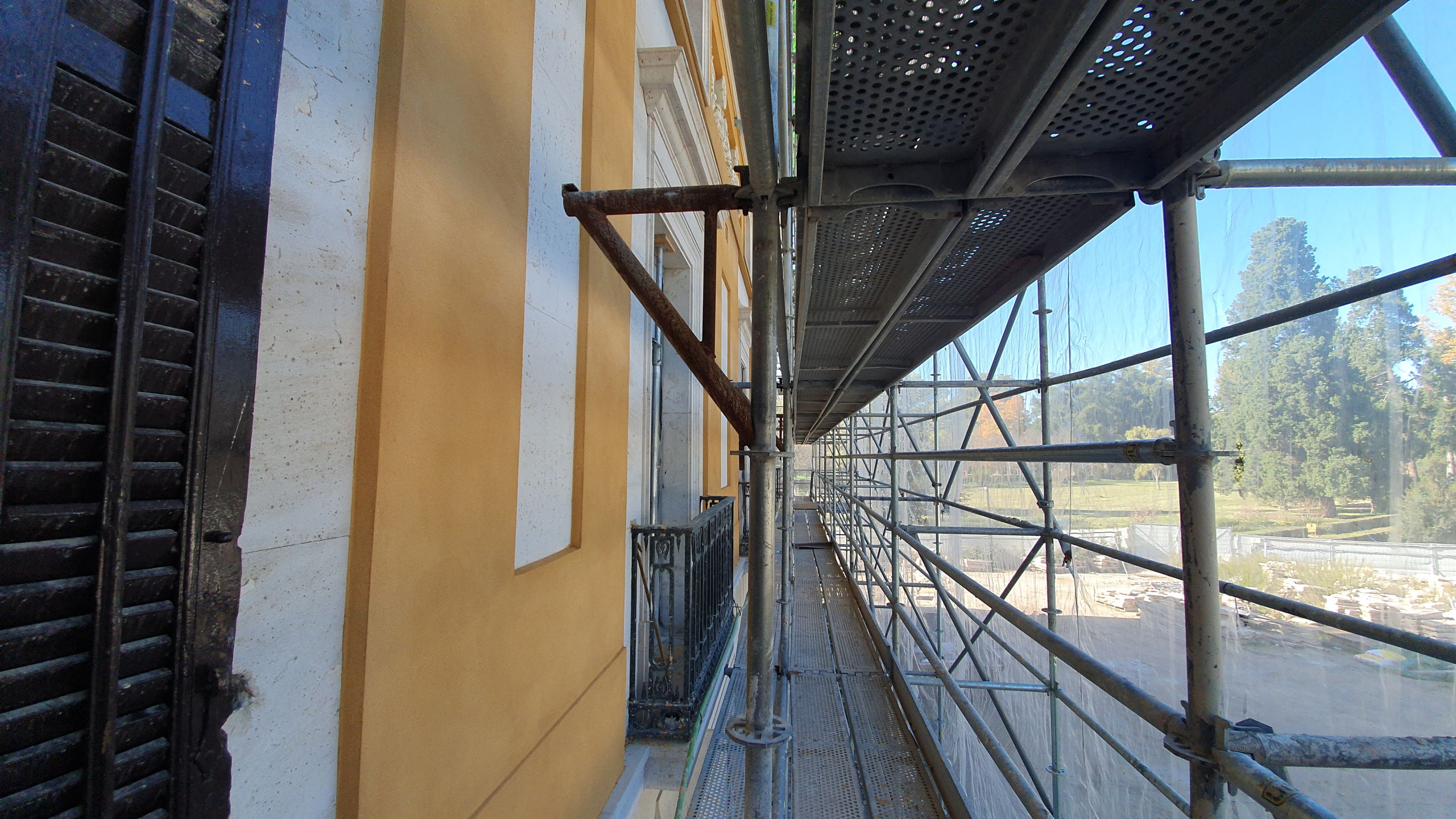 Patrimonio Nacional encara la recta final de la intervención de emergencia de la Casa del Labrador de Aranjuez, iniciada ahora hace ahora dos años y medio. El equipo técnico trabaja actualmente en la fachada para recuperar una imagen similar a la que tenía originalmente, en 1803, cuando el arquitecto Isidro González Velázquez concluyó el proyecto del palacete de recreo del Real Sitio de Aranjuez.