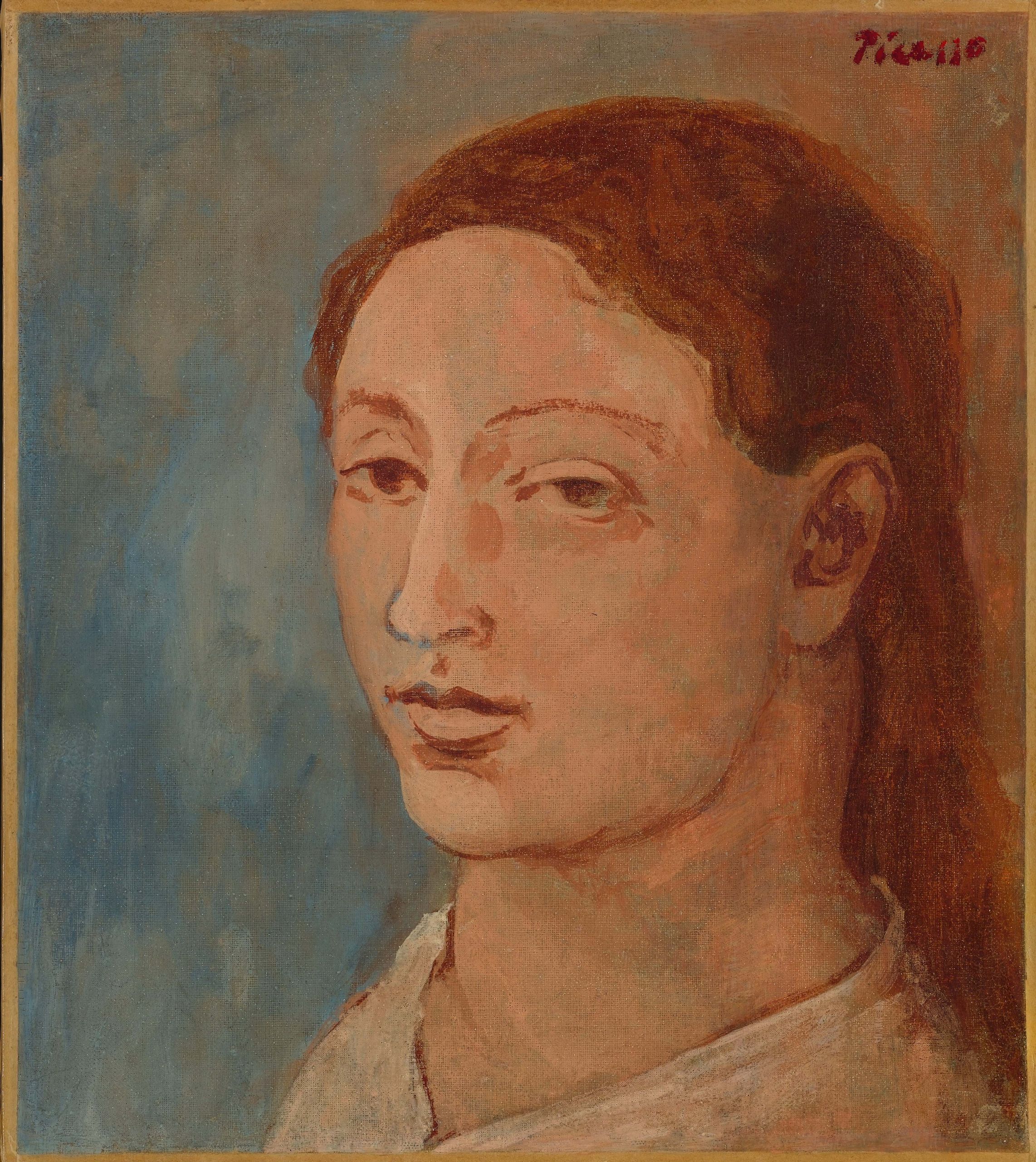 Fernande fue pareja de Picasso desde agosto de 1904 hasta 1912. La relación fue compleja por los esquemas heteropatriarcales a los que se aferraba el malagueño. “El artista consideraba la fisonomía de Fernande un significante sobre el que elaborar distintos significados que le permitían trabajar con diversos lenguajes plásticos y personajes”. / Imagen: Mujer con pañuelo (Retrato de Fernande Olivier)