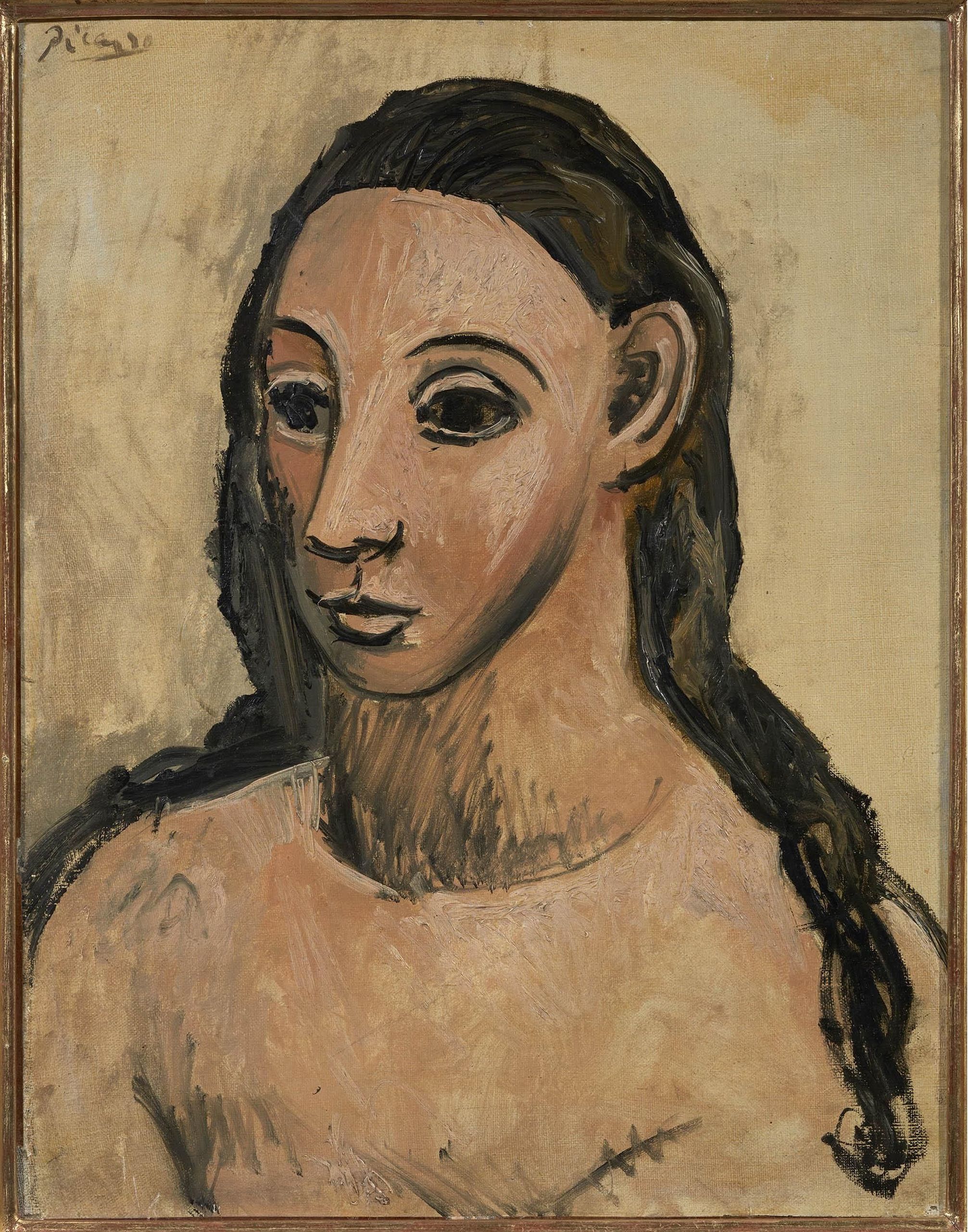 En este 1906, Picasso jugó con fisonomías inesperadas y misteriosas, con guiños al arte egipcio y del arte etrusco. Imagen: Busto de mujer joven, 1906