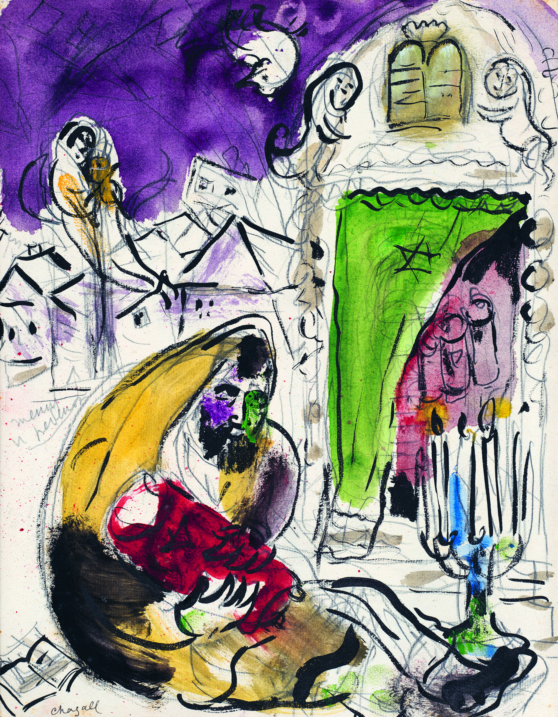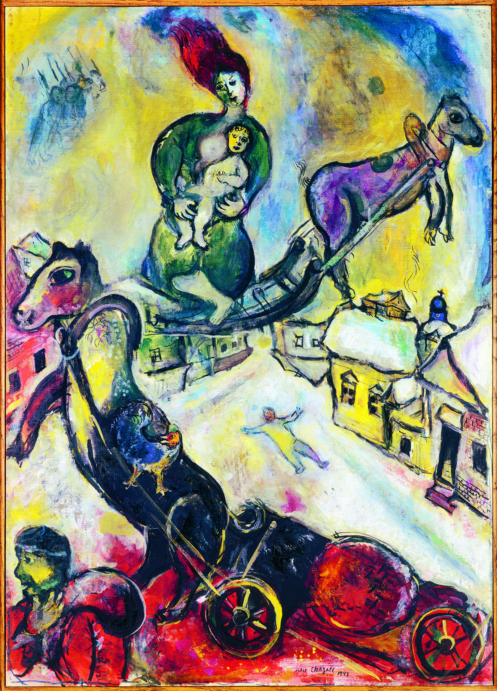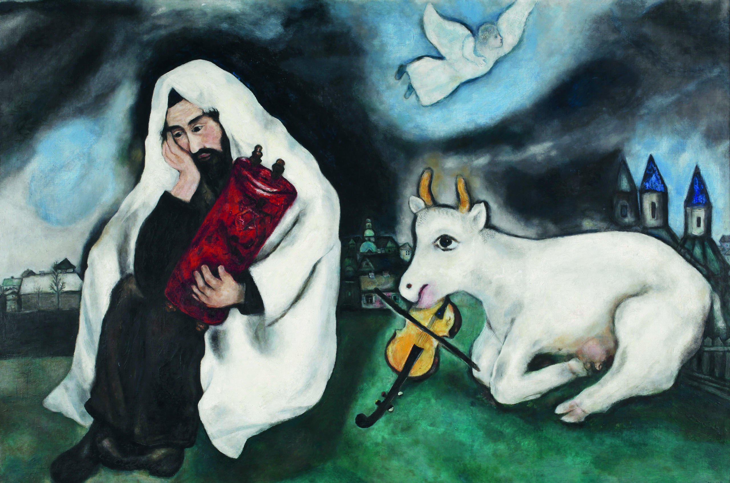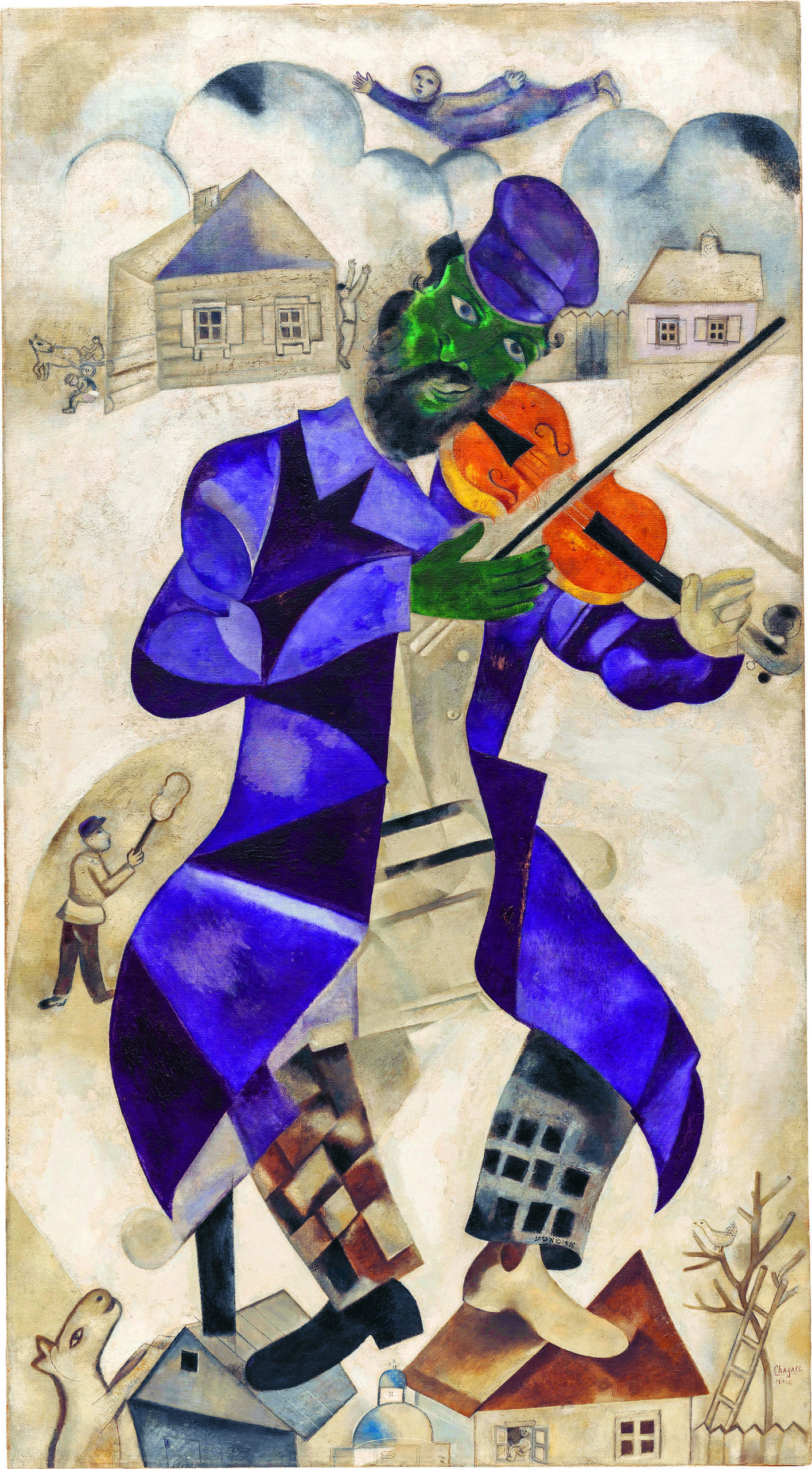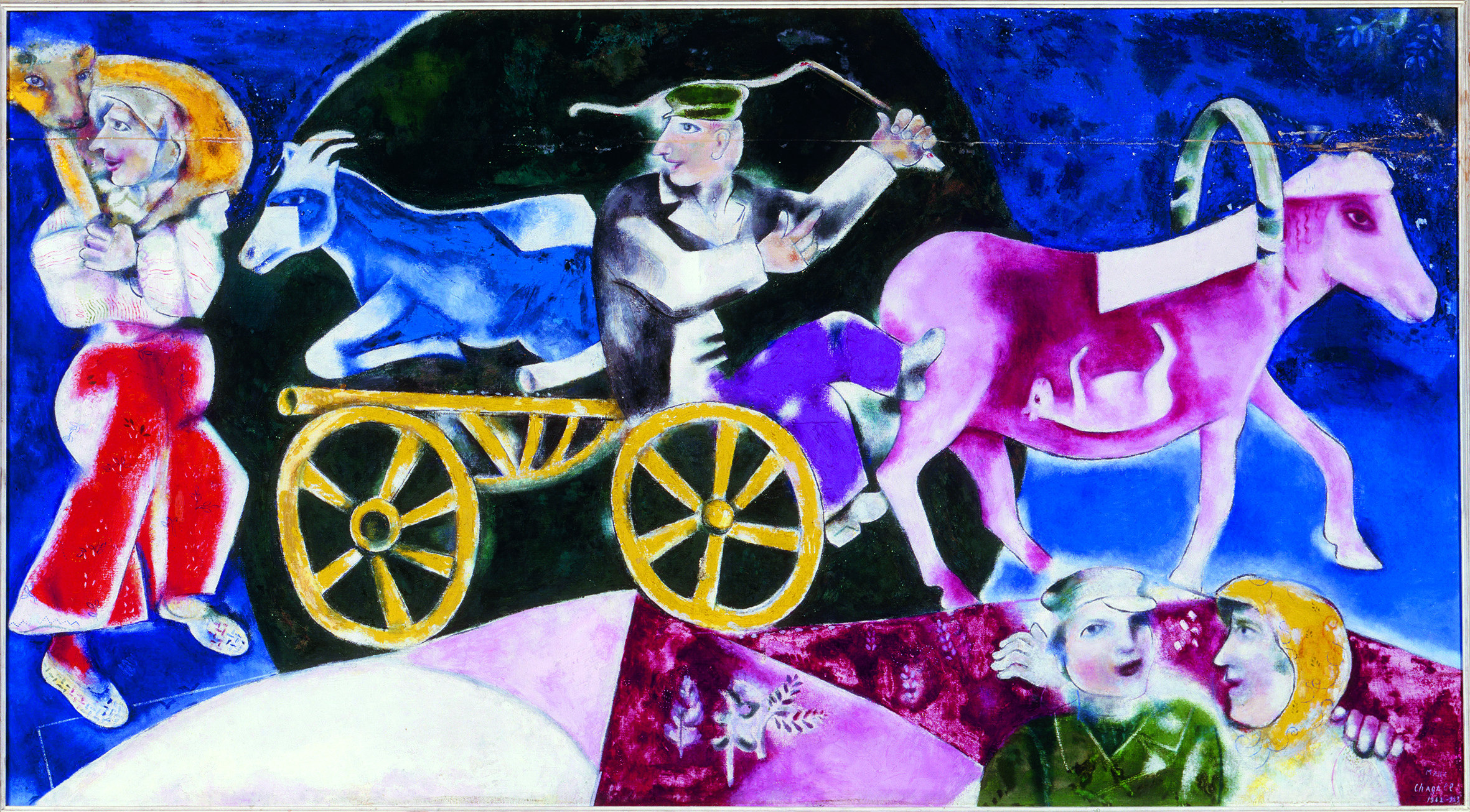 En el verano de 1920, Chagall se traslada a Moscú invitado a realizar la decoración del Teatro Nacional Judío de Cámara de Moscú (GOSEKT) y participa activamente en la vida artística judía. / Centre Pompidou, MNAM-CCI, Dist. RMN-Grand Palais / Philippe Migea