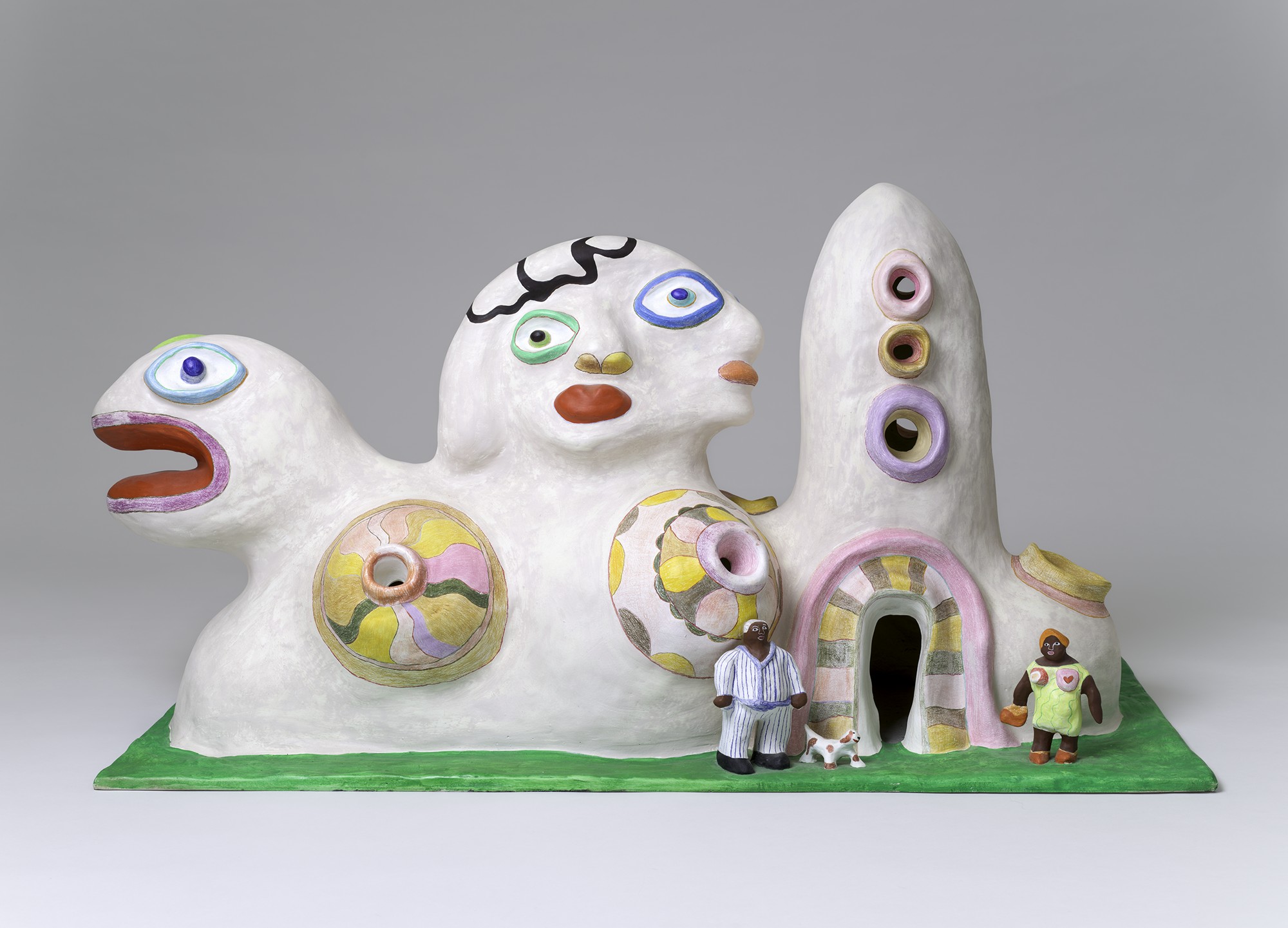 Hay humor, los guiños a la cultura popular y la estética propia de la vida cotidiana. | Niki de Saint Phalle Neuilly-sur-Seine, Francia, 1930–La Jolla, California, EE. UU., 2002 Sin título, 1979 Lápiz de cera, acrílico y lápiz de color sobre fibra de vidrio 67,3 × 125,7 × 62,2 cm Solomon R. Guggenheim Museum, Nueva York, donación, Susan Morse Hilles Estate 2002.38 © Niki Charitable art Foundation, VEGAP, Bilbao, 2024