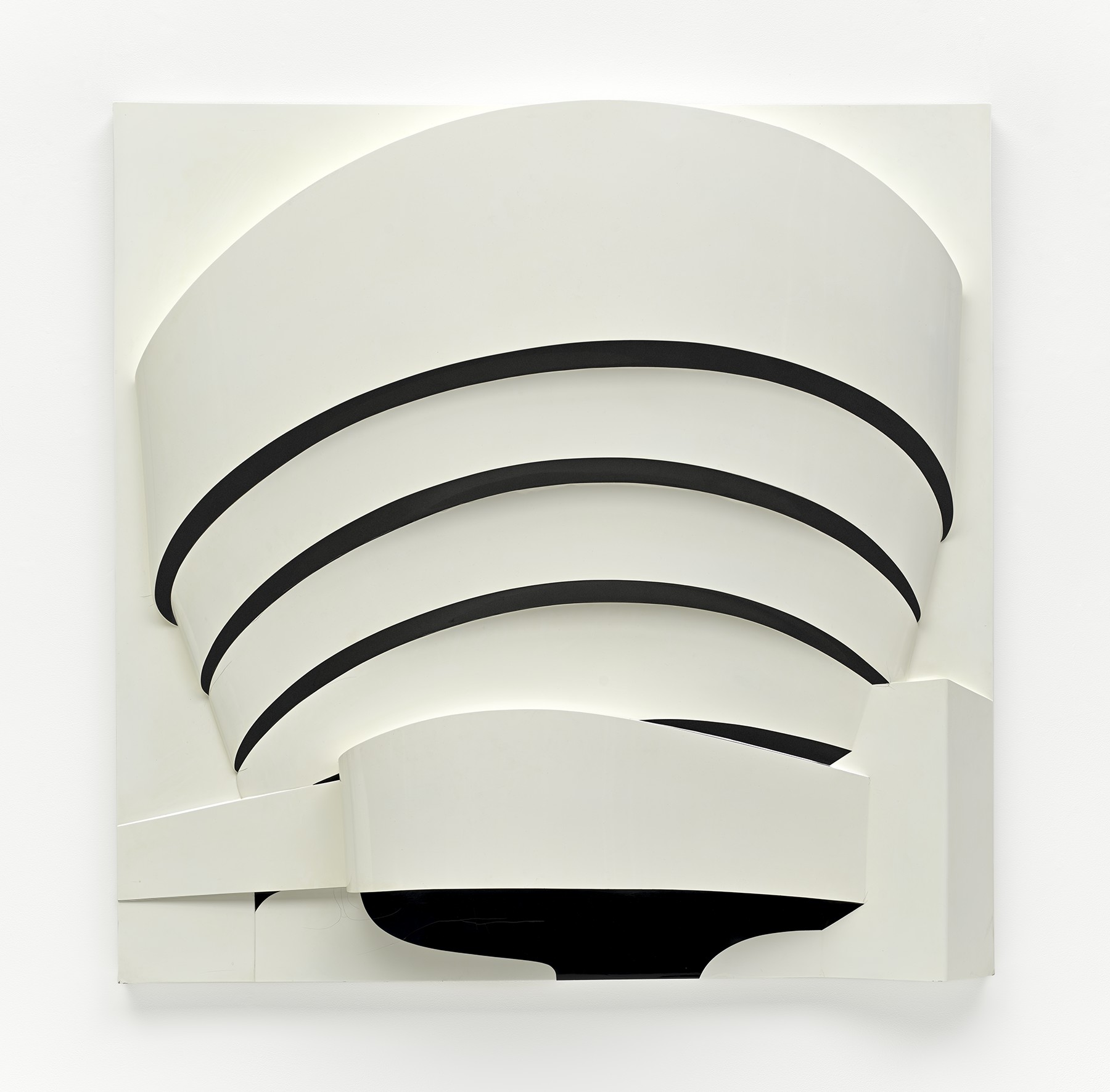A menudo se le atribuye a Richard Hamilton la fundación del Arte Pop. Hamilton pertenecía al Independent Group, que a principios y mediados de la década de 1950 en el Reino Unido apoyó las nuevas tecnologías y la cultura de masas como plataforma de producción de arte visual. | Richard Hamilton. El Solomon R. Guggenheim (Blanco y negro). Fibra de vidrio y celulosa. Solomon R. Guggenheim Museum, Nueva York 67.1859.2 © R. Hamilton. Todos los derechos reservados, VEGAP, Bilbao, 2024