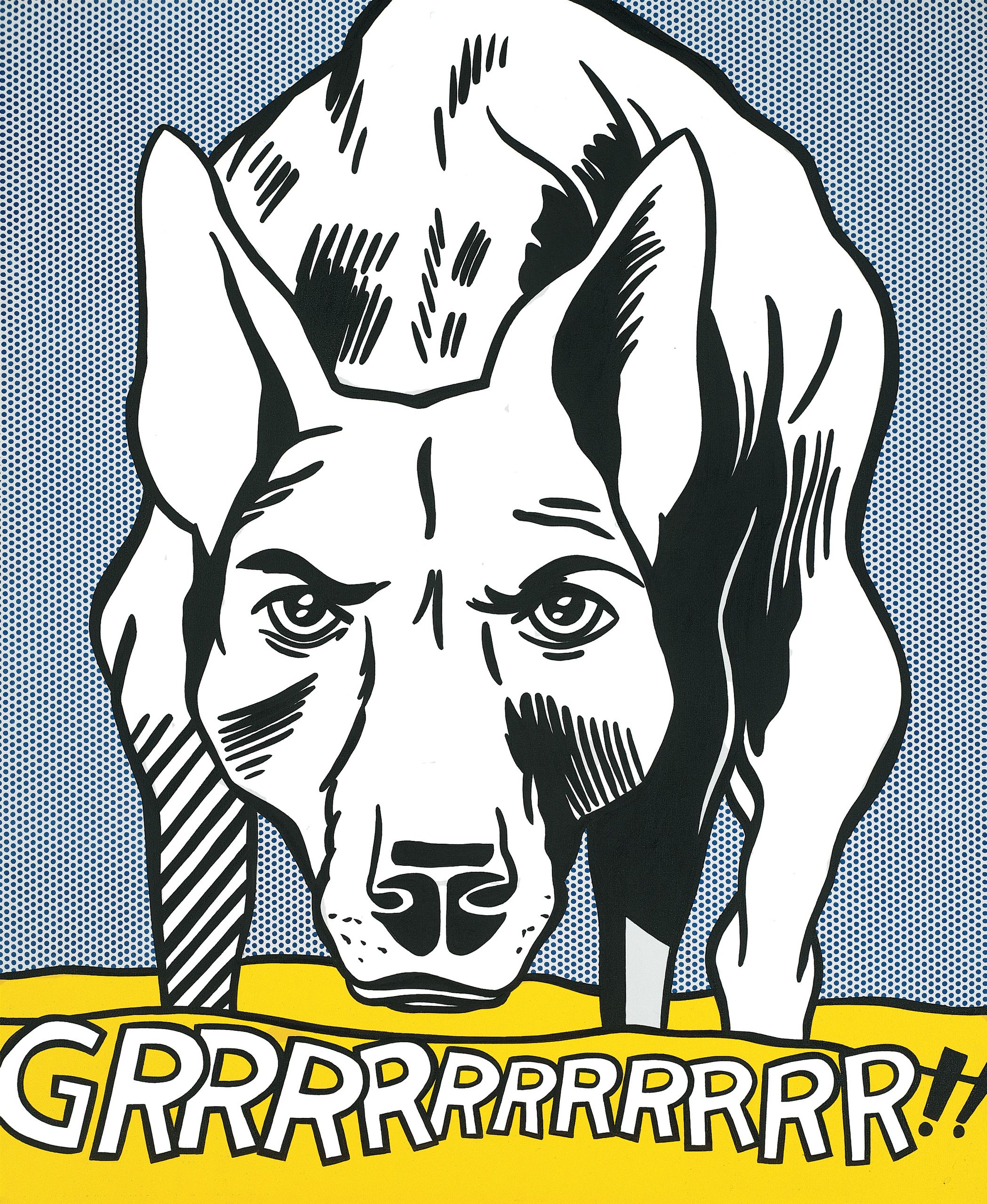 La exposición es un buen ejemplo del movimiento de Arte Pop que eclosionó en EE. UU. a principios de los años sesenta, desafiando la tradición y la subjetividad propios del Expresionismo Abstracto que imperaban en ese momento. | Roy Lichtenstein. Grrrrrrrrrrr!!, 1965. Solomon R. Guggenheim Museum, Nueva York, donación del artista 97.4565 © Roy Lichtenstein © Solomon R. Guggenheim Museum, Nueva York