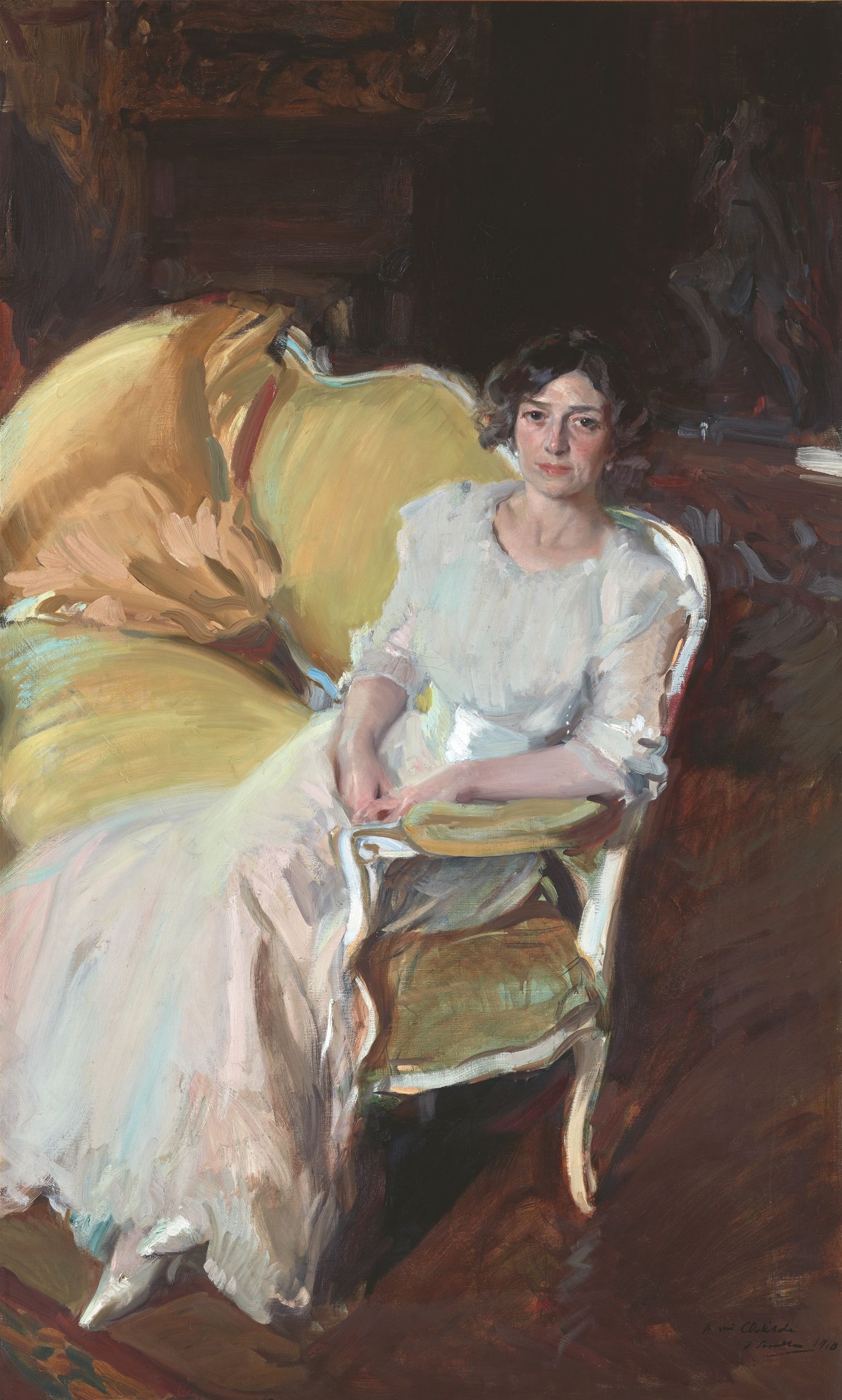 Clotilde sentada en un sofá, de Joaquín Sorolla. 1910. Óleo sobre lienzo, 180 x 110 cm.
