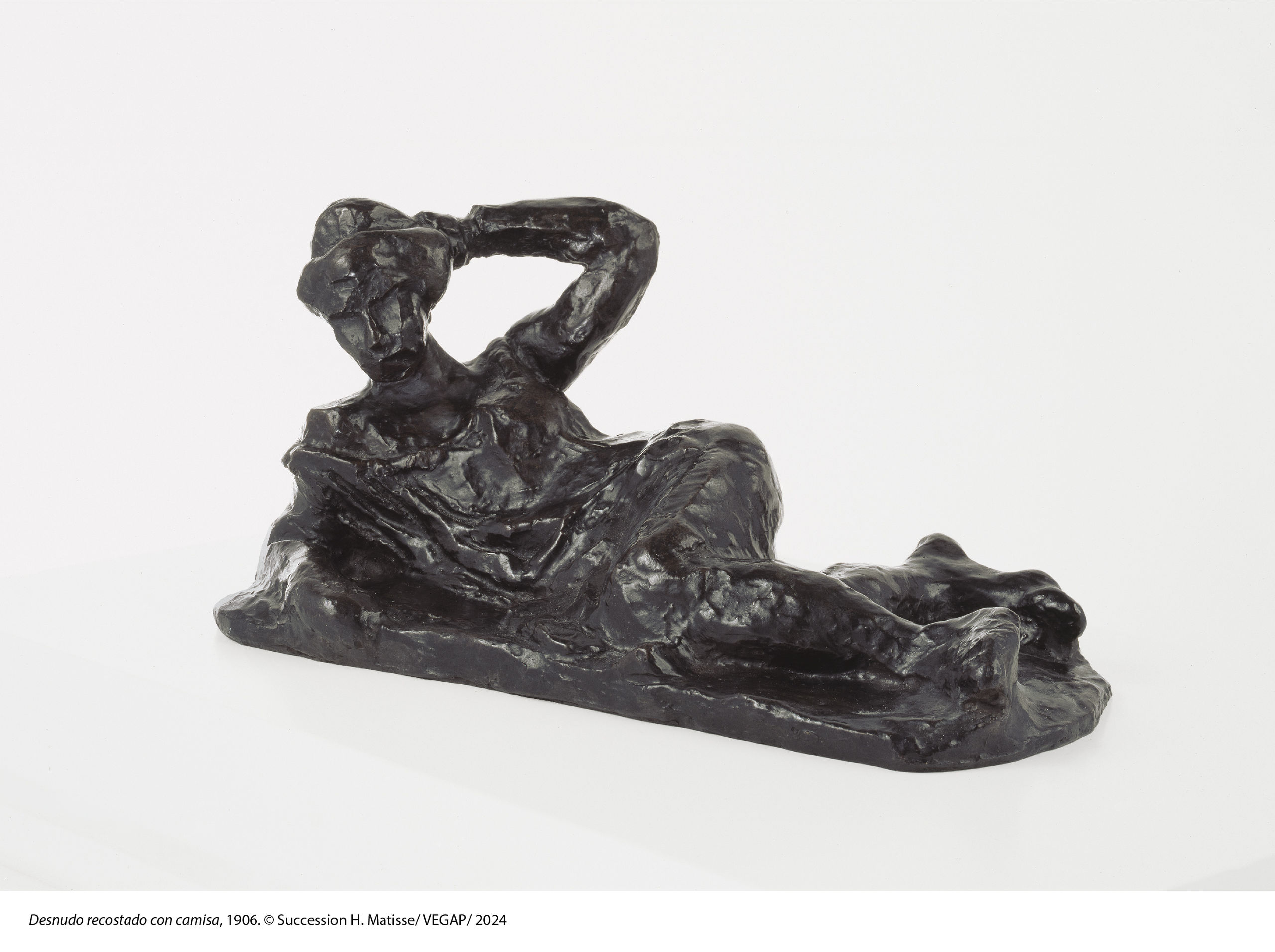 Henri Matisse. Desnudo recostado con camisa, 1906. Bronce fundido a la cera perdida con pátina de bronce. Donación de Marie Matisse al Estado francés para depósito en Museo Matisse de Niza, 1978. Museo de Orsay, París. © Succession H. Matisse/ VEGAP/ 2024.