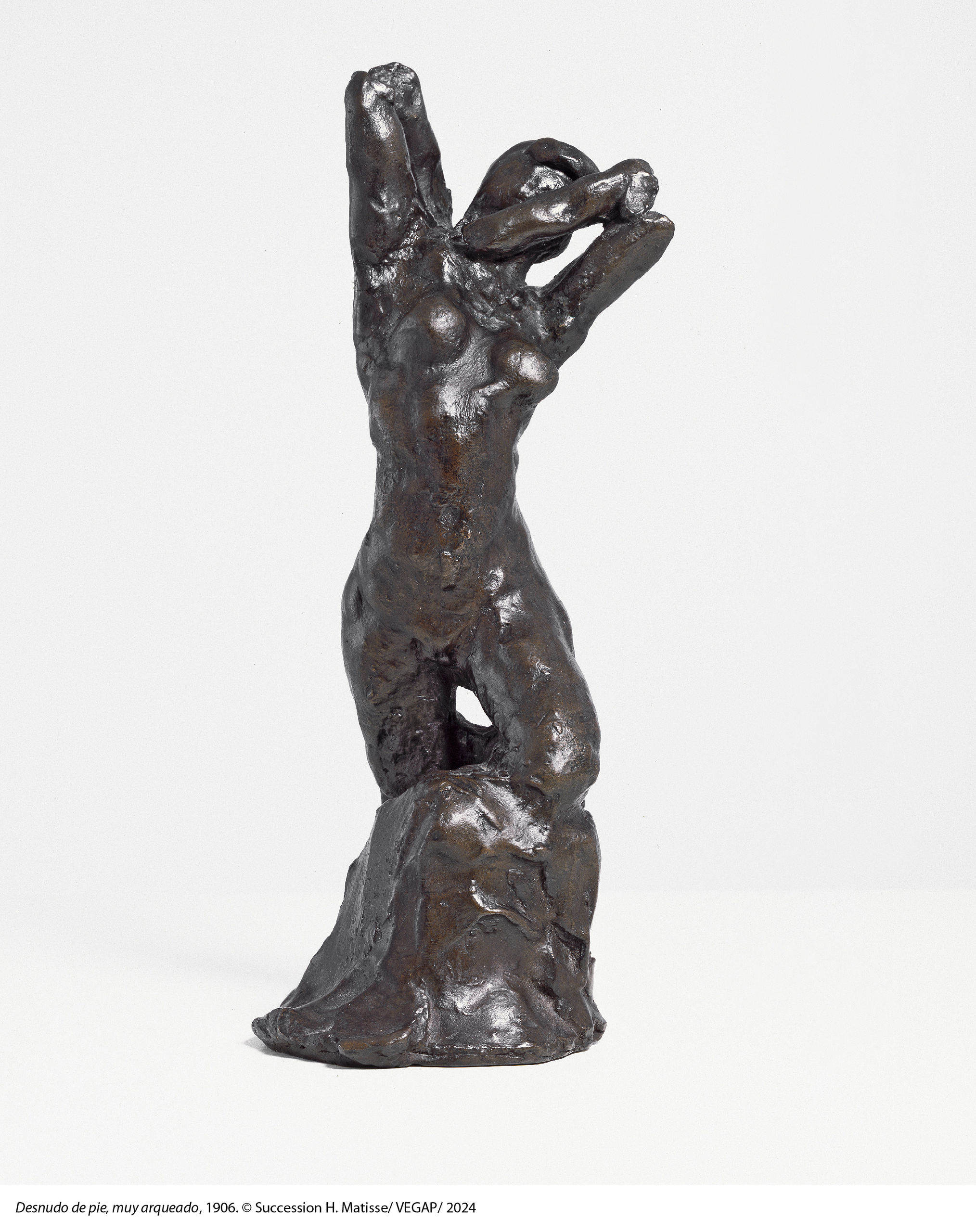Henri Matisse. Desnudo de pie, muy arqueado, 1906. Bronce fundido a la cera perdida con pátina verde oscura. Donación de Marie Matisse al Estado francés para depósito en Museo Matisse de Niza, 1978. Museo de Orsay, París. © Succession H. Matisse/ VEGAP/ 2024.