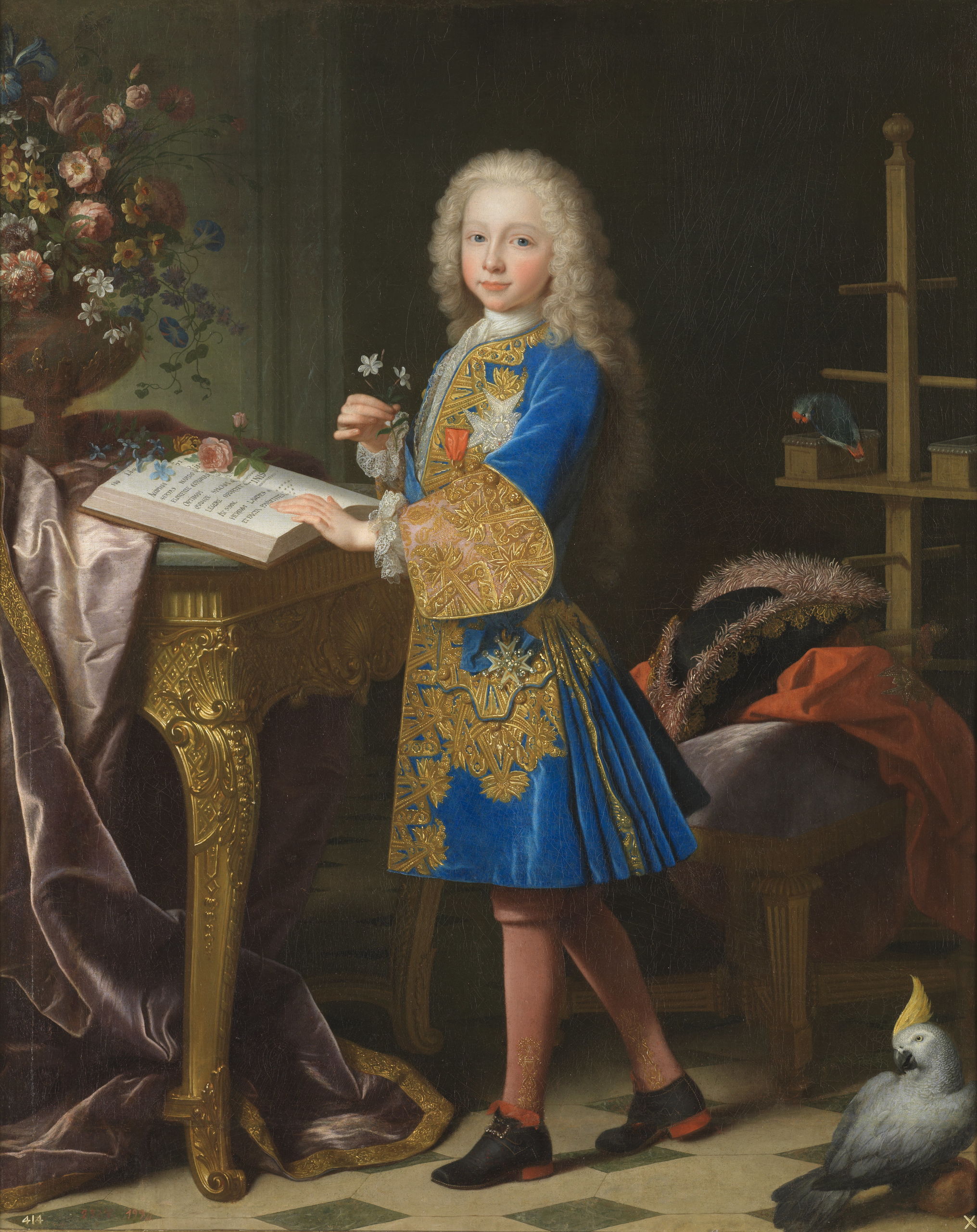 Las especies escogidas están presentes en el entorno del artista, incluso al pie de su taller de trabajo; y otras veces, como fruto de las expediciones a distintos lugares del mundo, se incorporaban plantas exóticas que provenían de países lejanos y que enriquecían la flora artística, especialmente a partir del siglo XVI. | Carlos III, niño, en su gabinete, de Jean Ranc. Óleo sobre lienzo. Hacia 1724.
