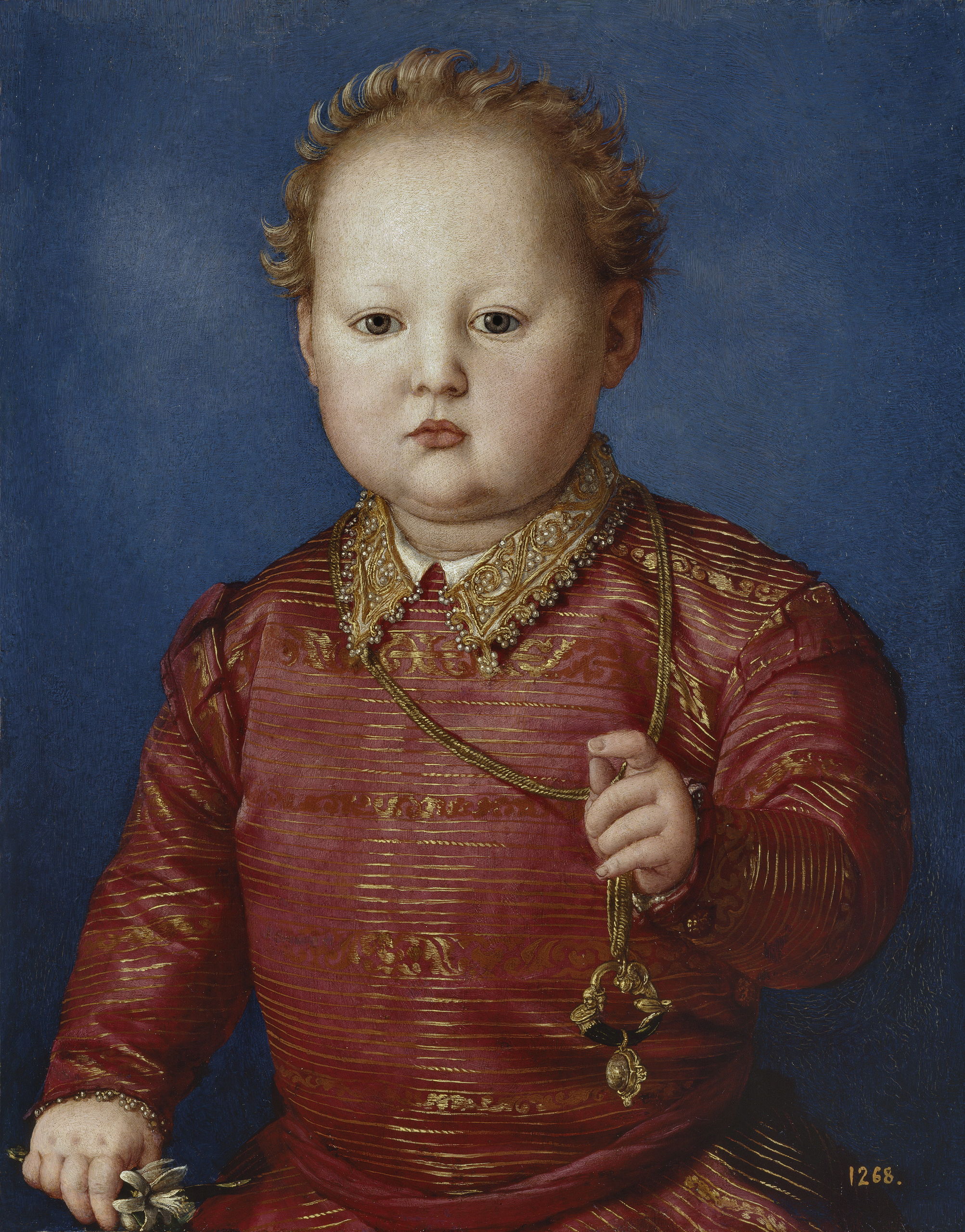 Este pequeño sostiene una flor en su mano, símbolo de su dinastía. | García de Medici, de Bronzino. Óleo sobre tabla, 48 x 38 cm. Hacia 1550.