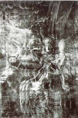 Se expone junto a su radiografía, unos trabajos que revelaron la existencia de una pintura soterrada. En la parte superior izquierda había una Resurrección de Cristo de una composición anterior, rodeada de pequeñas nubes en las que se vislumbran rostros o ánimas.