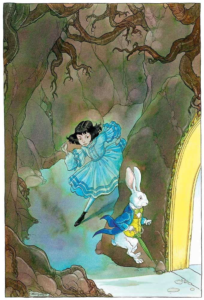 CaixaForum lleva a Madrid Los mundos de Alicia para homenajear al personaje más icónico de Lewis Carroll. Se trata de la primera exposición que ofrece una amplia visión sobre el impacto de los libros protagonizados por Alicia. Puede verse del 3 de abril al 10 de agosto de 2025. | Imagen: Alicia siguiendo al Conejo Blanco, de Chris Riddell