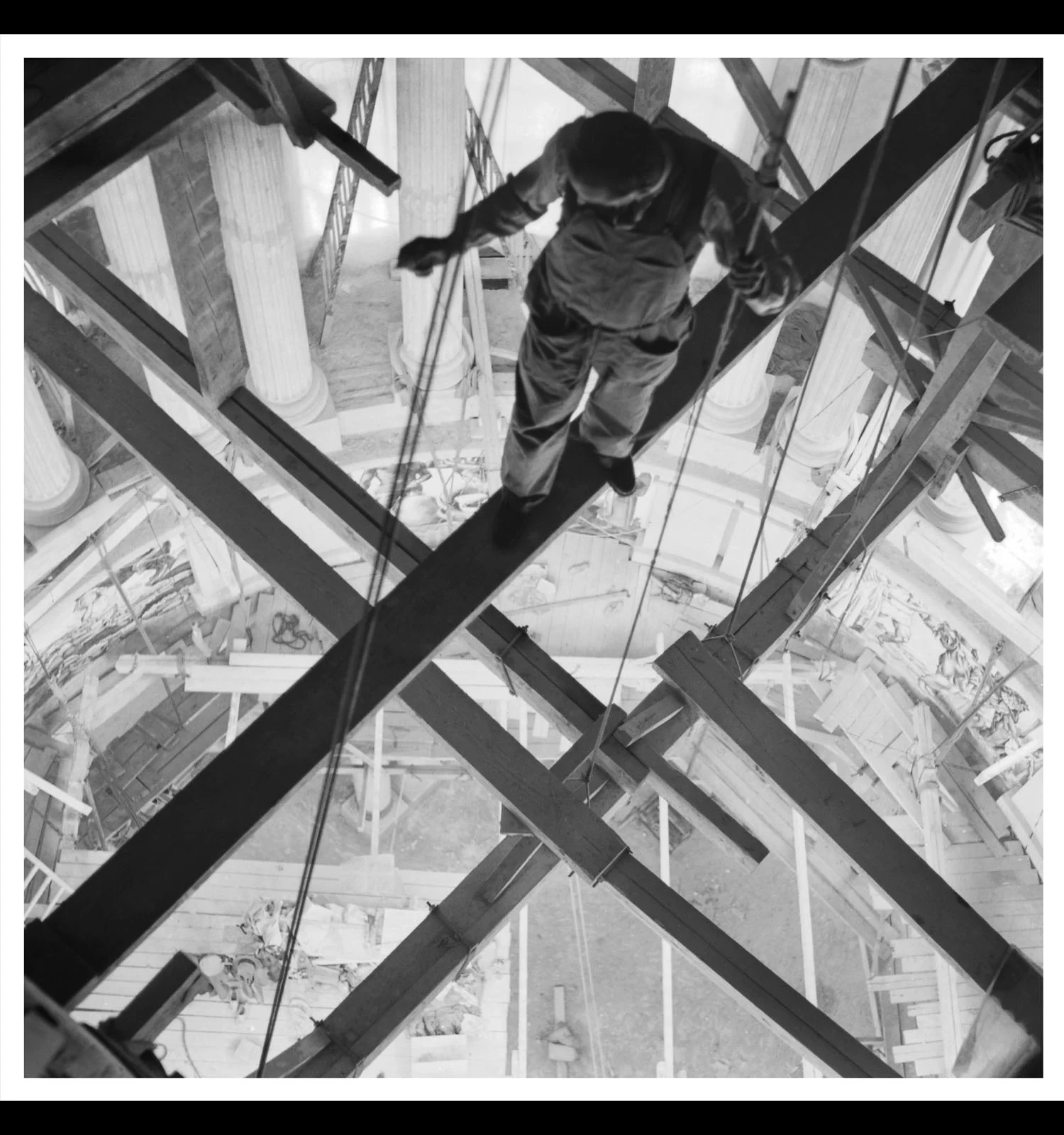 El Museo Nacional de Arte de Cataluña dedica una exposición a Francesc d’Assís Galí i Fabra (Barcelona, 1880-1965), una de las figuras más relevantes del arte catalán de la primera mitad del siglo XX. Francesc d’A. Galí. El maestro invisible puede verse del 8 de mayo al 14 de septiembre de 2025. | Imagen: Galí pintando en la cúpula del Palau Nacional.