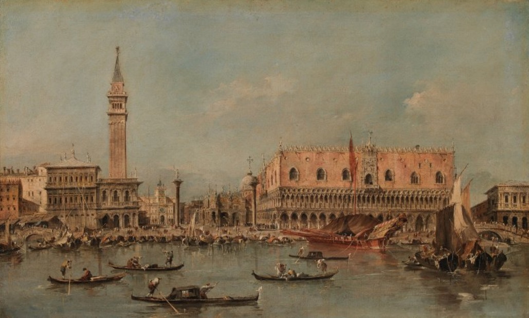 Llegan por primera vez en su totalidad a Madrid el conjunto de obras de Francesco Guardi perteneciente al Museo Calouste Gulbenkian. Junto a las 18 pinturas de Guardi, adquiridas entre 1907 y 1921, se muestra un dibujo del mismo artista, incorporado en 2002, y un óleo de su hijo Giacomo. Las obras están fechadas entre 1765 y 1791 e ilustran lugares icónicos de Venecia, como el puente de Rialto o el Palacio Ducal, fiestas como la de la Ascensión, los alrededores de la ciudad y algunos caprichos, pertenecientes al final de su carrera. Del 3 de febrero al 11 de mayo de 2025 en el Museo Thyssen. | Imagen: Vista del Molo con el Palacio Ducal, de Francesco Guardi
