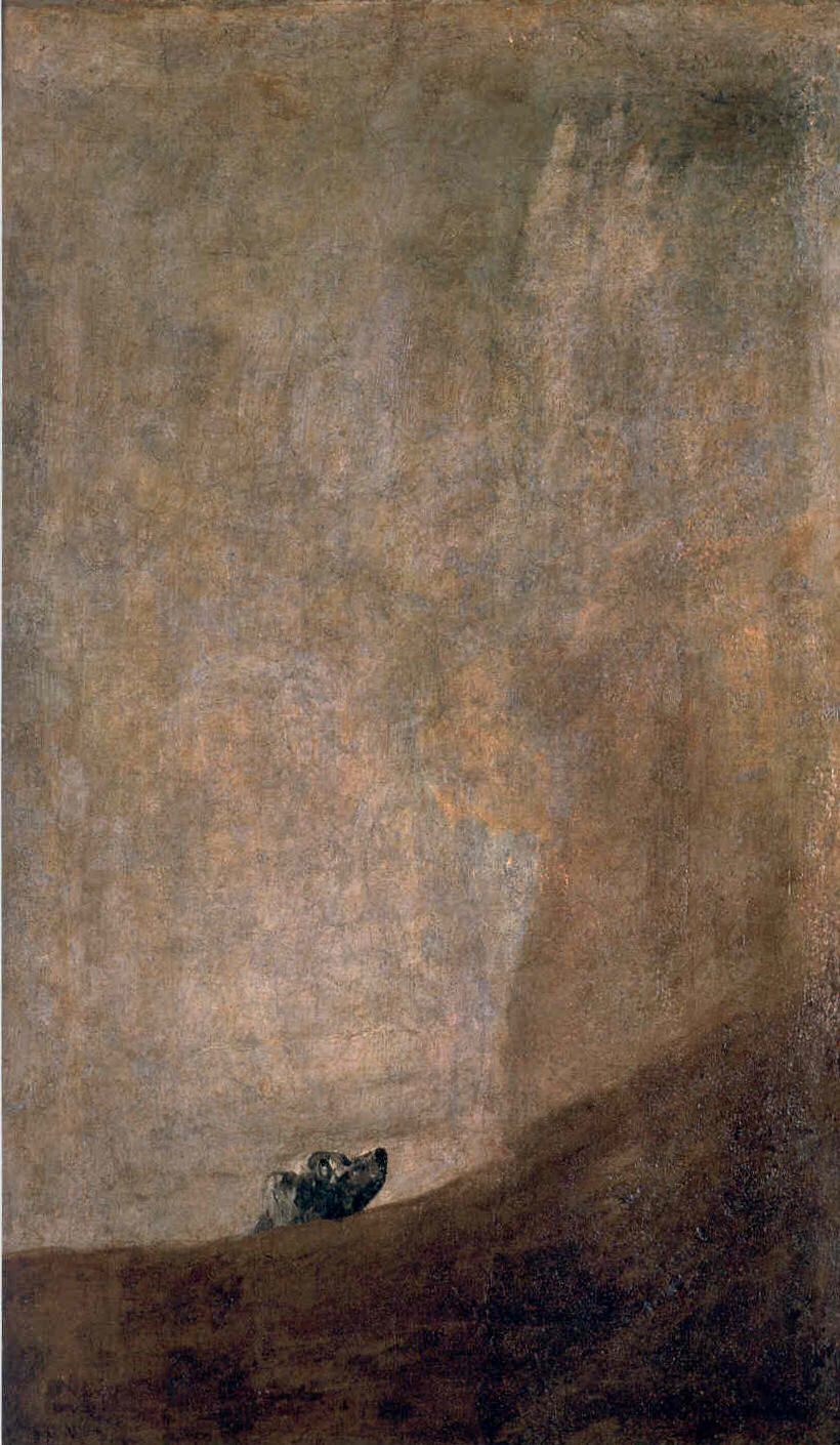 Esta obra pertenece a las Pinturas Negras de Goya, aunque nadie la entiende demasiado bien. Hay quien cree que el perro semihundido es una alegoría de la España de aquel momento. El flash de una fotografía de J. Laurent tomada en 1874 desveló que el perro está mirando el vuelo de unos pájaros. Otras teorías afirman que Goya no llegó a terminar la pintura y hay quien lo considera un poema visual. Para el artista Antonio Saura es simplemente “el cuadro más bello del mundo”.