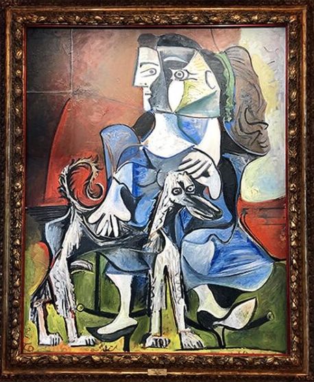 Es un retrato de la segunda esposa de Picasso, Jacqueline Roque, y de su perro Kaboul, un galgo afgano. El 14 de mayo de 1999 se vendió en una subasta de Sotheby's por casi 55 millones de dólares y ahora forma parte de la colección de Wynn Fine Art en Florida.