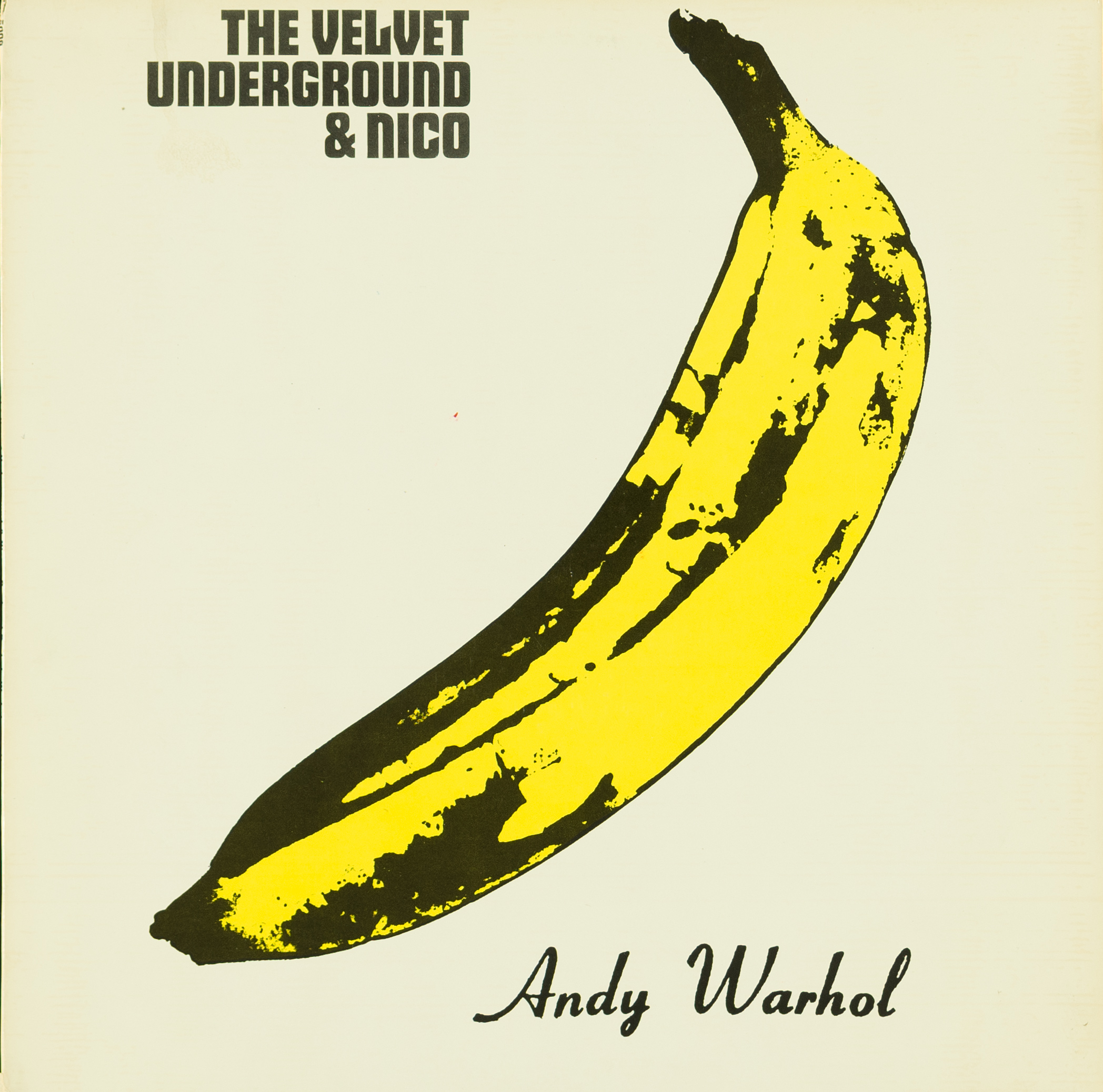 En 1965, Warhol anunció que se retiraba como artista para centrarse en el cine y la música. Se convirtió en el representante de la banda The Velvet Underground. Se encargó del diseño de la portada del disco, una de las más emblemáticas de todos los tiempos con un plátano amarillo estridente sobre fondo blanco. | Lp de The Velvet Underground The Velvet Underground & Nico. Impresión offset, 1967.