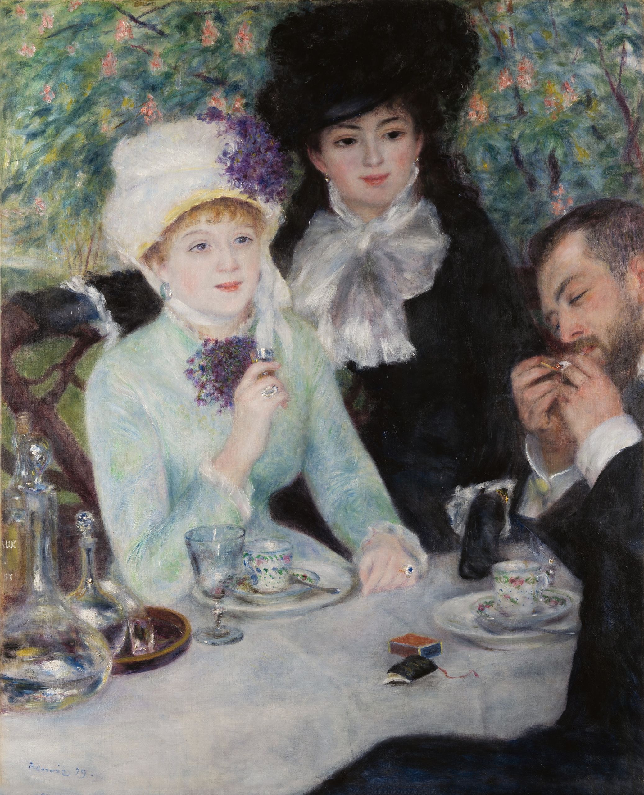 Tras las grandes transformaciones urbanísticas, cobran importancia los bulevares, las avenidas, los parques, los jardines y los cafés, como puede verse en obras como esta. | Imagen: Después del almuerzo, 1879, Pierre-Auguste Renoir. Óleo sobre lienzo, 100,5 × 81,3 cm