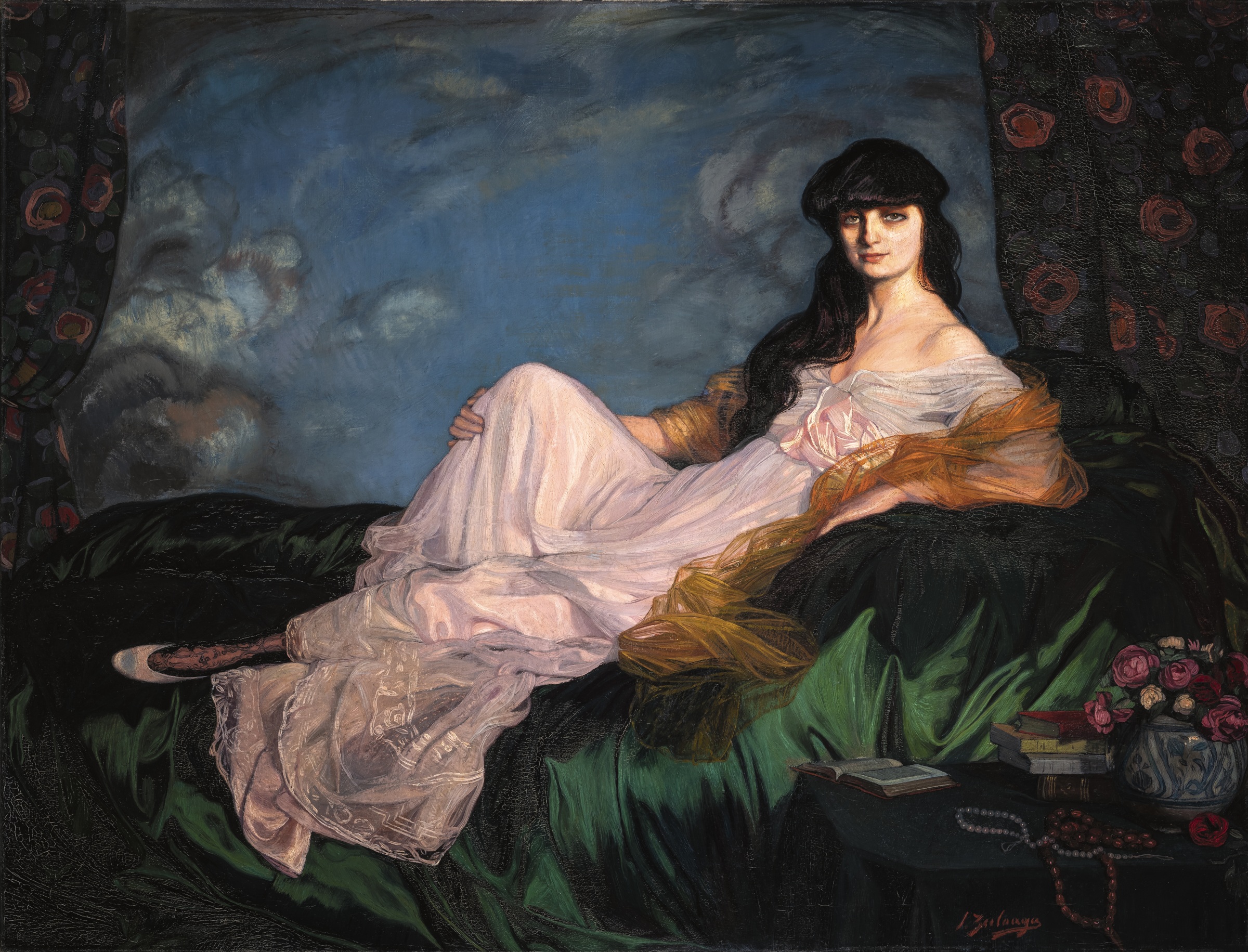 La muestra se detiene en la conocida “conexión española” del escritor, a través de las figuras de Mariano Fortuny y Madrazo y Raimundo de Madrazo, incluyendo en las salas algunos vestidos y telas diseñados por el primero para mostrar un tema, el de la moda, imprescindible en el autor francés. | Imagen: Retrato de la condesa Mathieu de Noailles (1913), de Ignacio Zuloaga.