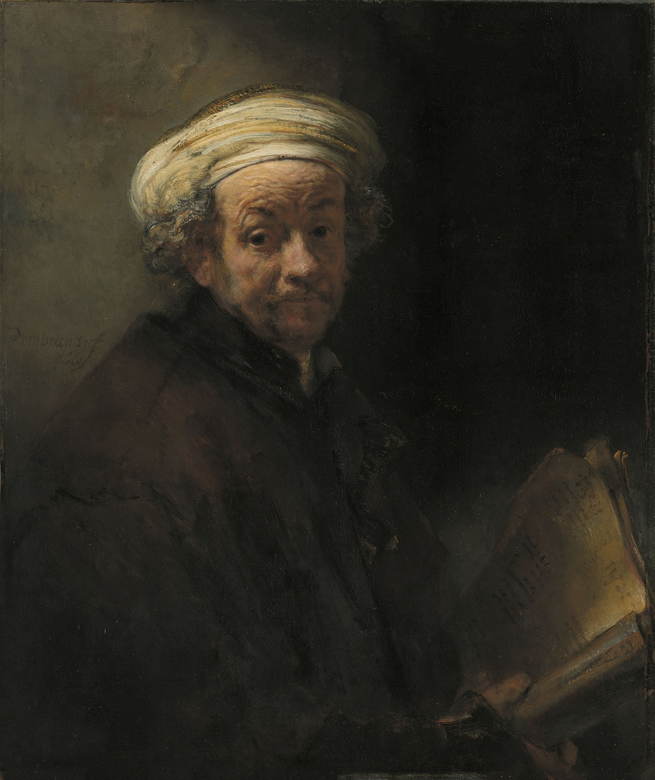 El visitante encontrará referencias a la novela El tiempo recobrado en la que Proust pone de manifiesto lo implacable y destructor que es el paso del tiempo. Se acompaña de dos de autorretratos de Rembrandt, uno de 1642-1643 y otro 1661, y dos imágenes de Marcel Proust en su lecho de muerte. | Imagen: Autorretrato como el apóstol san Pablo, 1661, de Rembrandt. Óleo sobre lienzo, 91 × 77 cm.